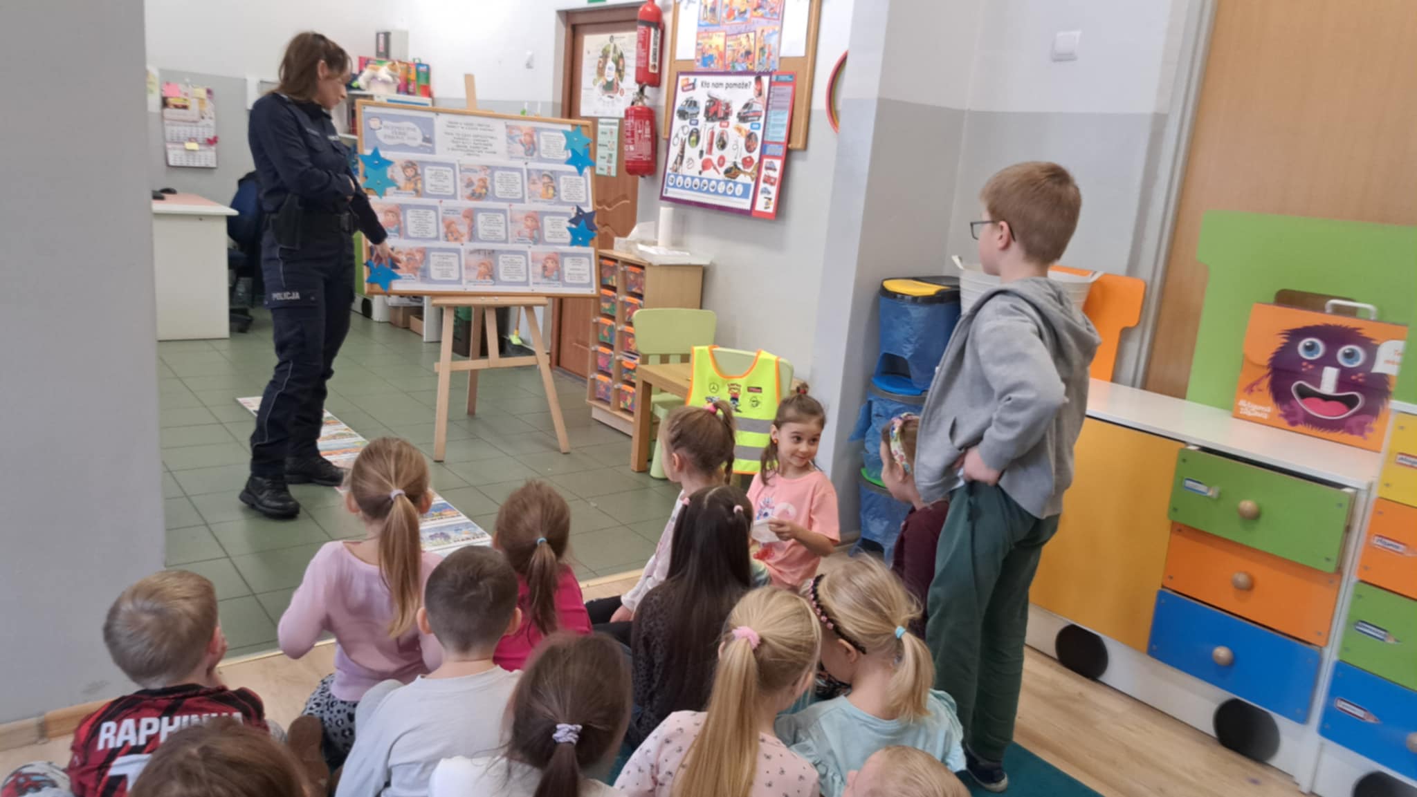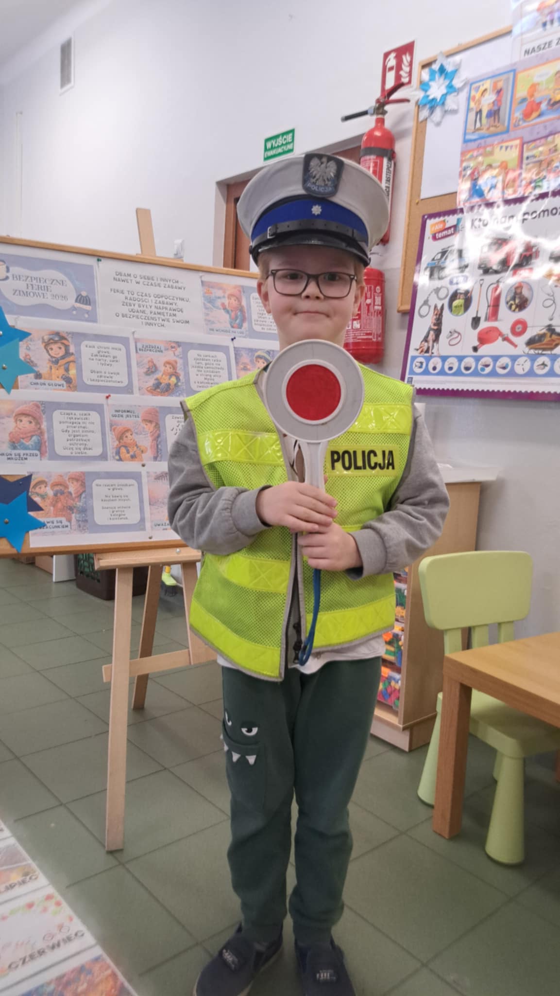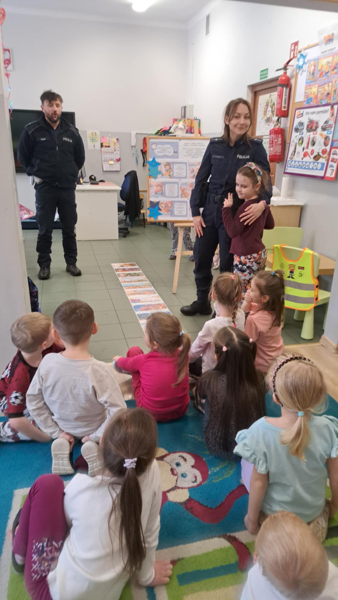 W czwartek pod hasłem "Bezpieczni w ferie" w oddziale przedszkolnym odbyło się spotkanie profilaktyczne z funkcjonariuszami tomaszowskiej policji. Dzieci poznały osoby pracujące w policji, atrybuty do codziennej pracy, ale przede wszystkim zasady bezpiecznej zabawy na powietrzu. Uczyły się zachowań wobec nieznajowych i jak reagować na krzywdę innych.