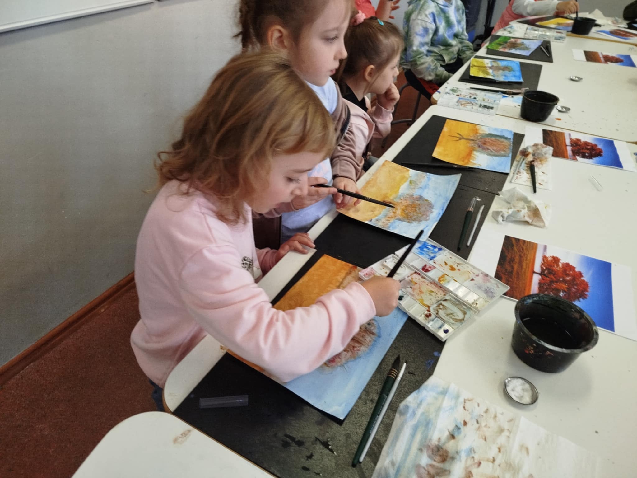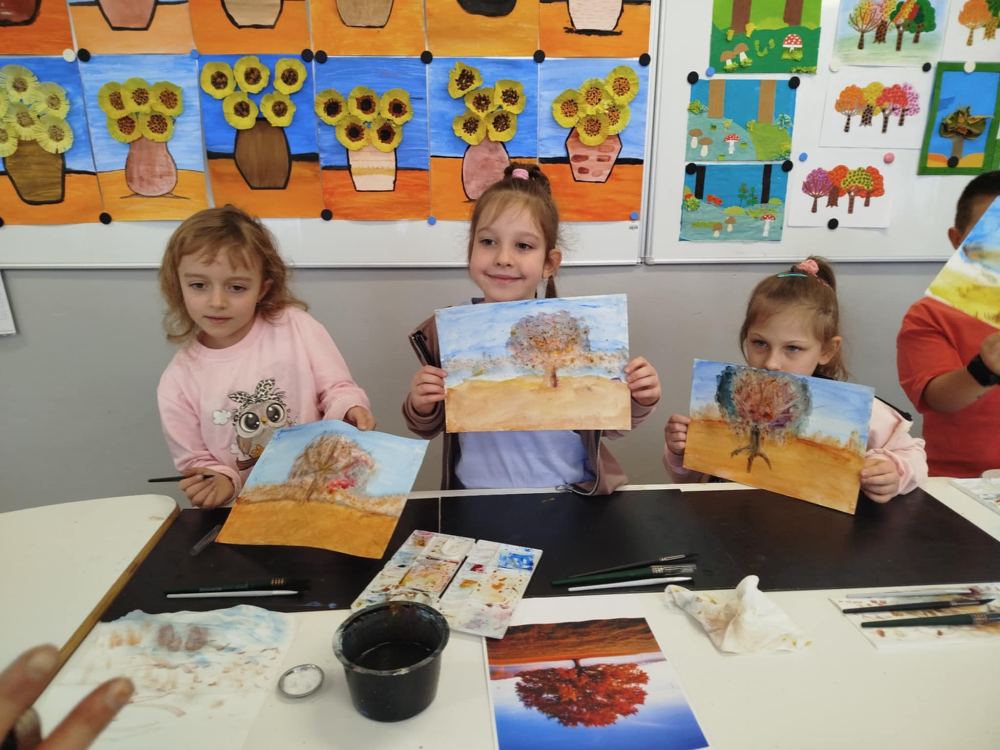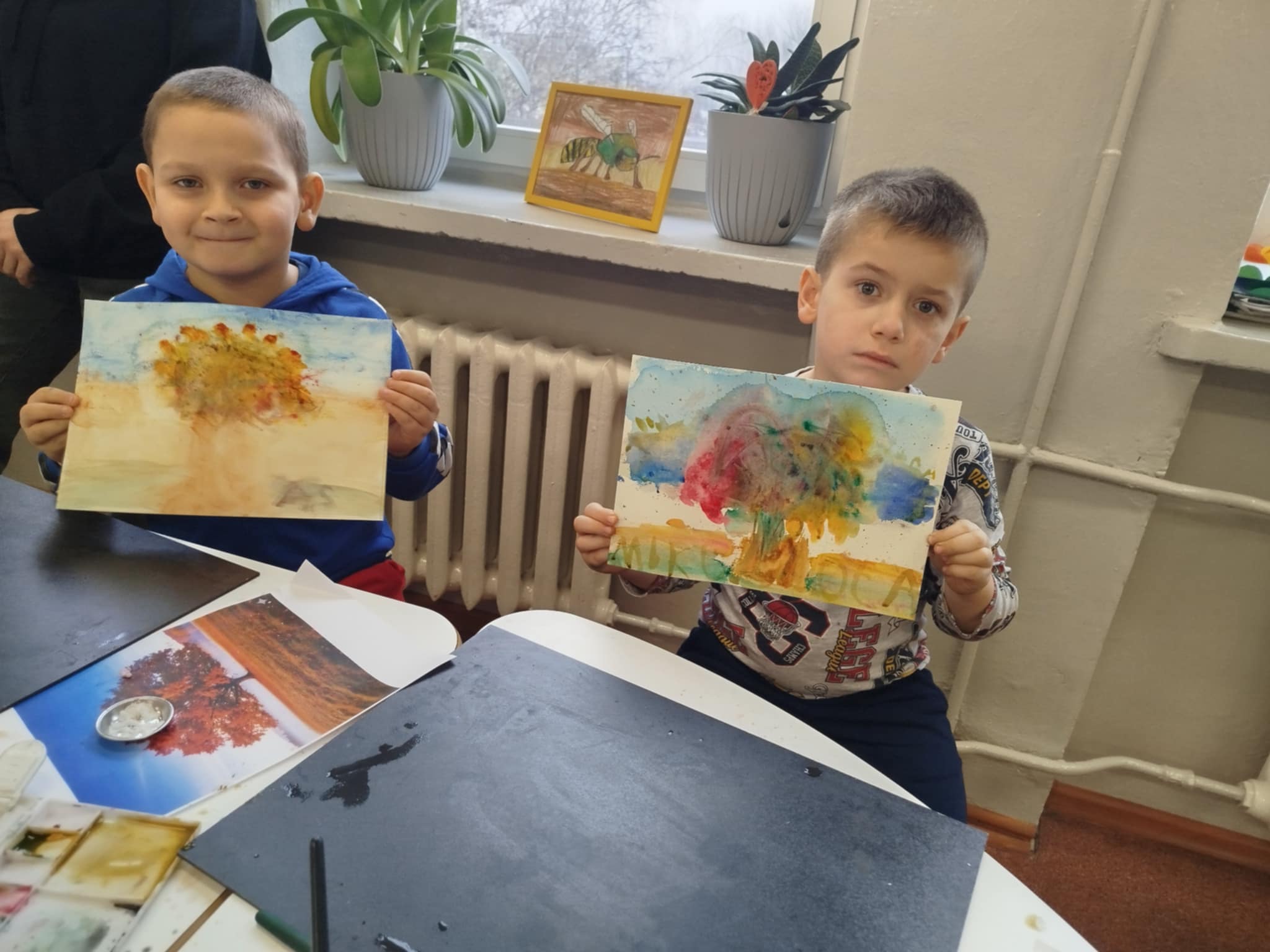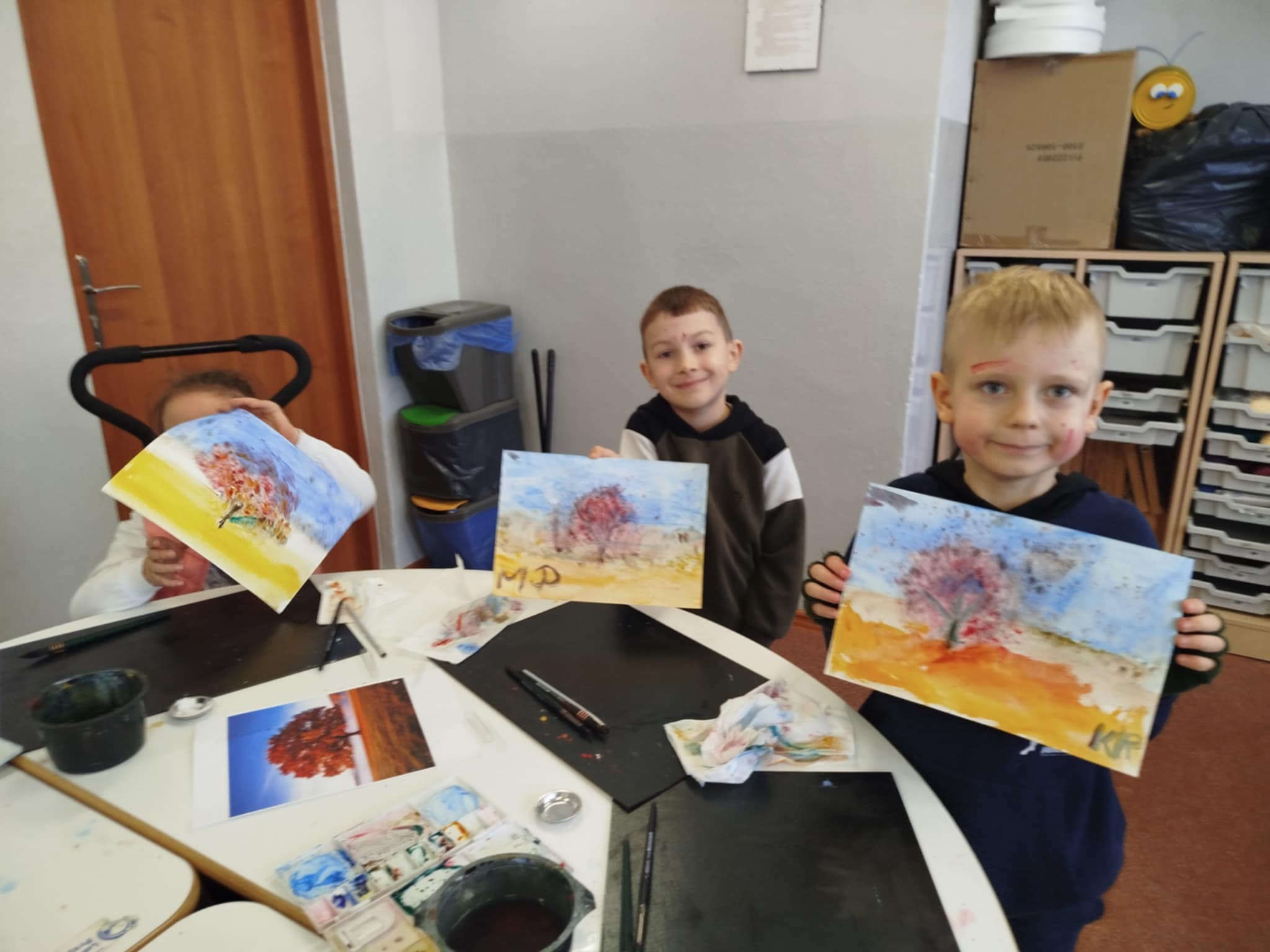 25 listopada w klasie 1a odbyły się wyjątkowe warsztaty plastyczne z panią Iwoną Karoń-Jarzyńską, realizowane w ramach programu "Cztery pory roku z akwarelą" - pierwszy etap: Jesień. Pani Iwona, laureatka wielu nagród artystycznych, znana ze swojej wrażliwości twórczej i profesjonalnego podejścia do dzieci, z ogromnym zaangażowaniem poprowadziła zajęcia. Pod jej czujnym okiem uczyliśmy się podstaw malowania akwarelą, poznawaliśmy techniki pracy z farbą i odkrywaliśmy, jak wiele można wyrazić za pomocą delikatnych, wodnych barw. Dziękujemy pani Iwonie za poświęcony czas, dzielenie się wiedzą, doświadczeniem i pasją, która z pewnością zainspiruje naszych małych artystów do dalszej twórczej przygody!