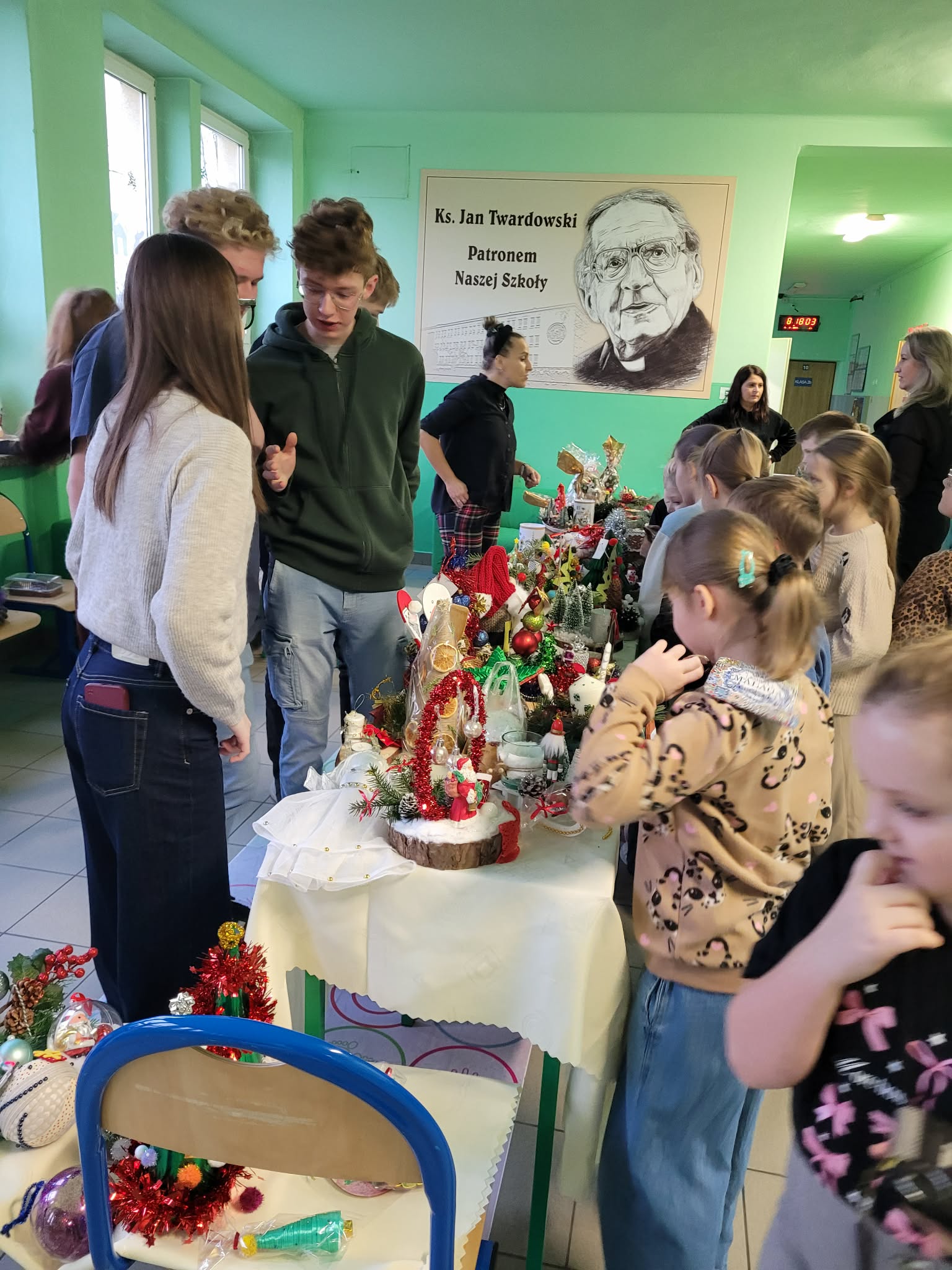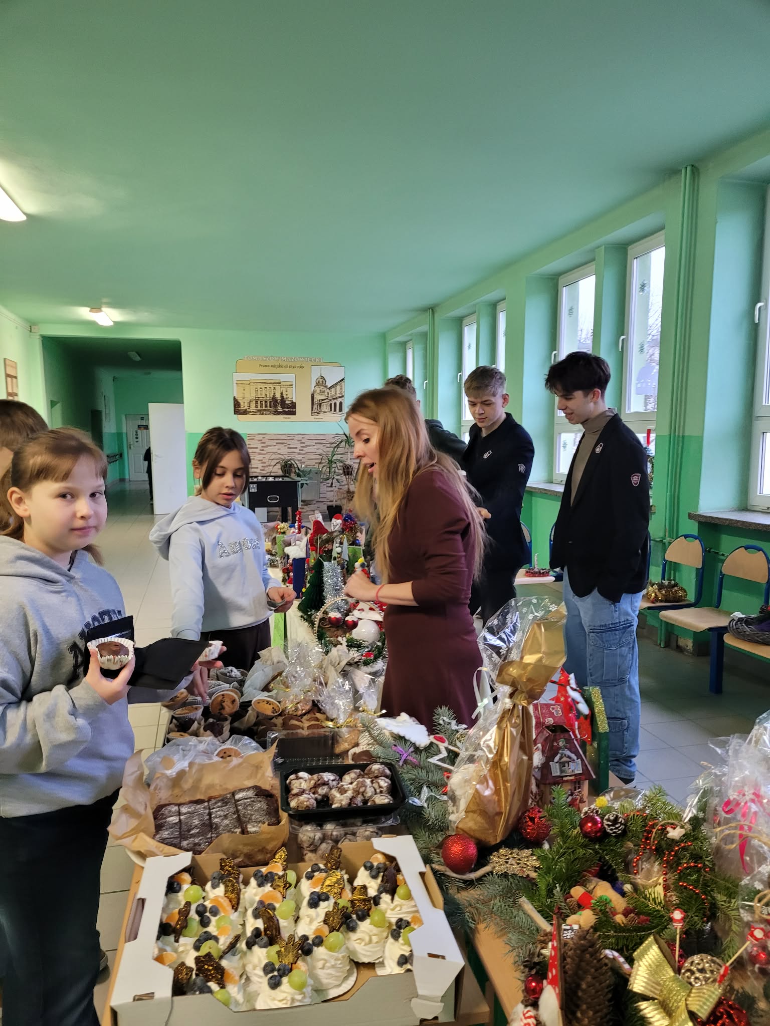Dzisiaj, 15 grudnia w Zespole Szkolno-Przedszkolnym nr 9 odbył się kiermasz bożonarodzeniowy, który wprowadził wszystkich w radosny, świąteczny nastrój. Dzieci z ogromnym zaangażowaniem przygotowały piękne stroiki świąteczne, a rodzice zadbali o słodki poczęstunek, piekąc pyszne babeczki i ciasta. Zebrane podczas kiermaszu środki zostaną przeznaczone na cele szkolne.