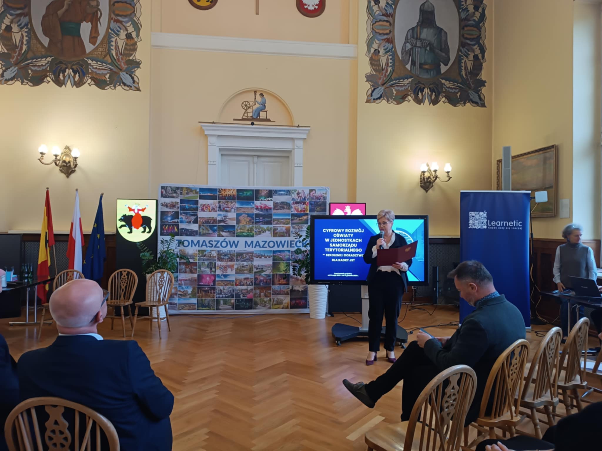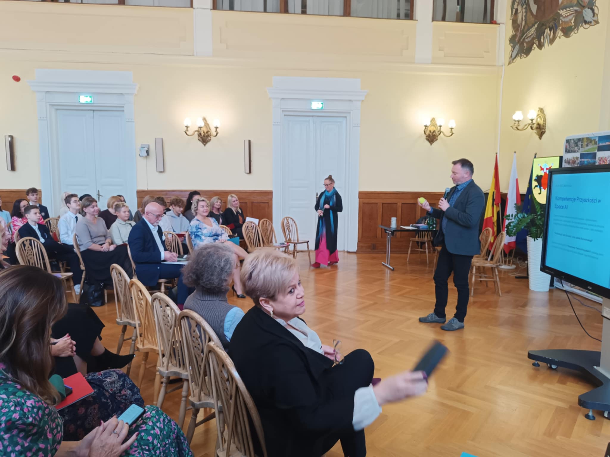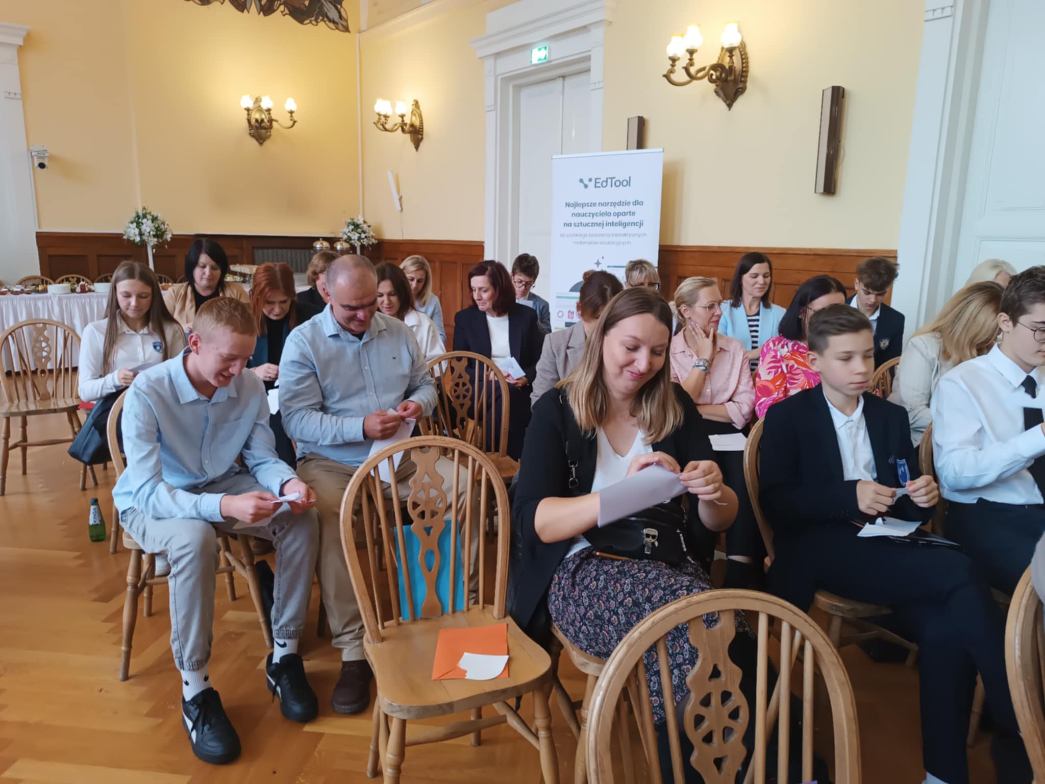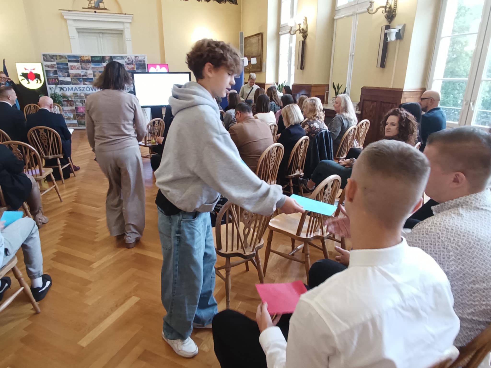 9 października 2025 r. przedstawiciele naszej szkoły – dyrekcja, nauczyciele, rodzice i uczniowie – uczestniczyli w konferencji oświatowej pod hasłem „Technologia jest dla ludzi, a nie ludzie dla technologii”, która odbyła się w sali obrad Urząd Miasta Tomaszów Mazowiecki. Spotkanie było podsumowaniem udziału miasta w ogólnopolskim projekcie Ośrodek Rozwoju Edukacji „Cyfrowy rozwój oświaty w jednostkach samorządu terytorialnego”.W wydarzeniu uczestniczyli przedstawiciele oświaty, samorządu, uczniowie oraz rodzice. Wystąpienia zaproszonych ekspertów i panel dyskusyjny poświęcone były odpowiedzialnemu wykorzystaniu nowych technologii w edukacji oraz planowaniu dalszych działań w zakresie cyfryzacji tomaszowskich szkół.Podczas konferencji zaprezentowano efekty lokalnych działań projektowych, prelekcje specjalistów oraz filmowe prezentacje przygotowane przez uczniów. Szczególnie podkreślono znaczenie wartości, odpowiedzialności i współpracy w procesie cyfrowej transformacji.Cieszymy się, że mogliśmy być częścią tego ważnego wydarzenia, które pokazuje, że nowoczesna edukacja to nie tylko technologia, ale przede wszystkim ludzie, relacje i wspólne wartości.
