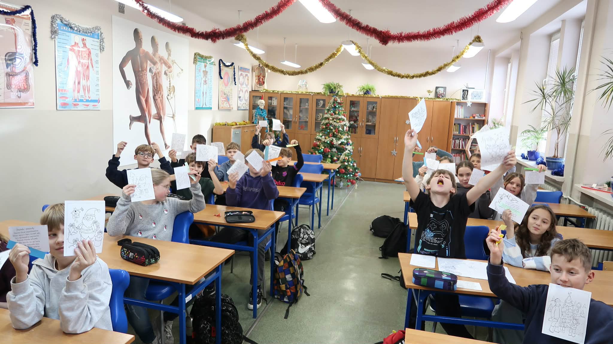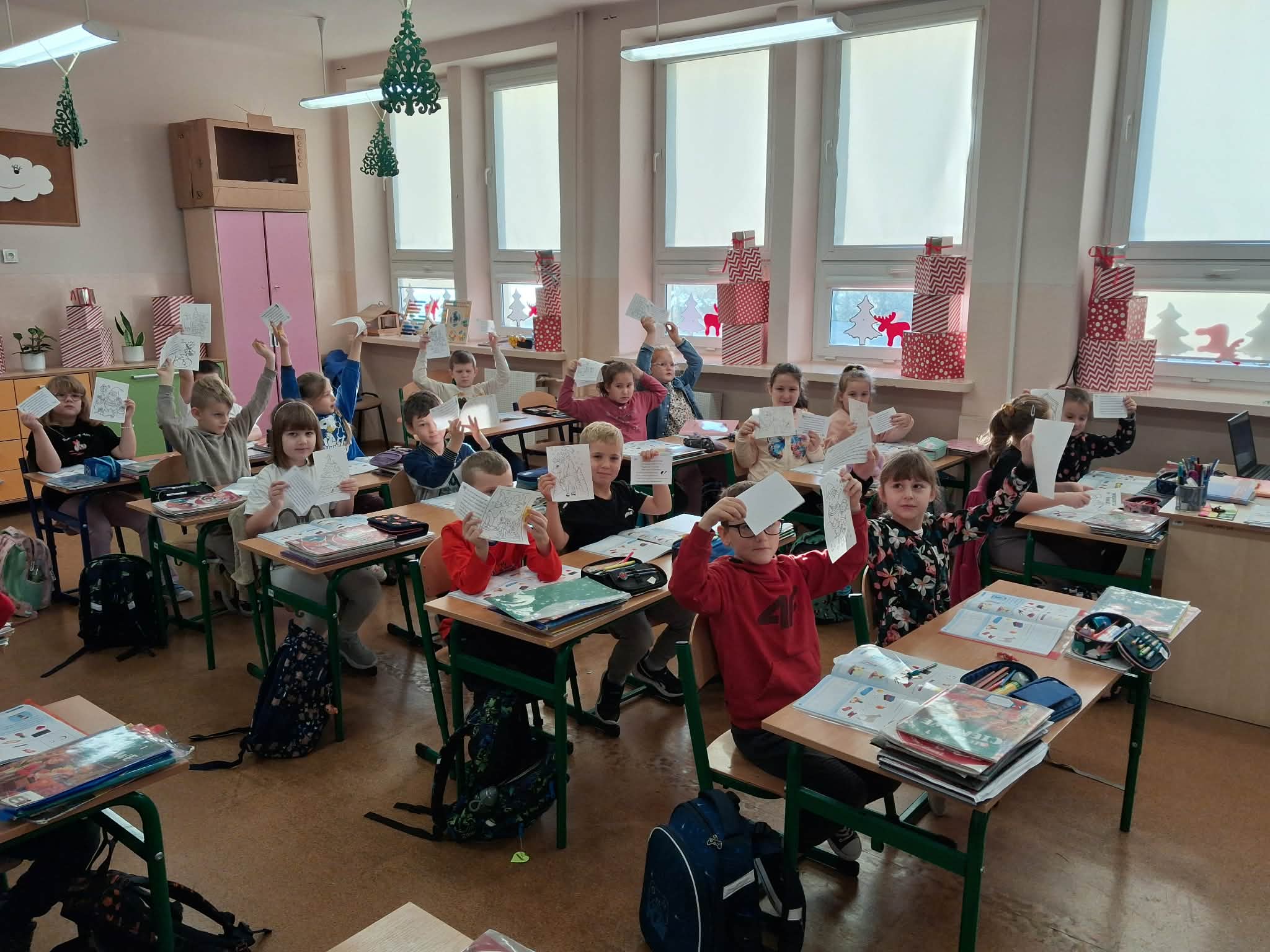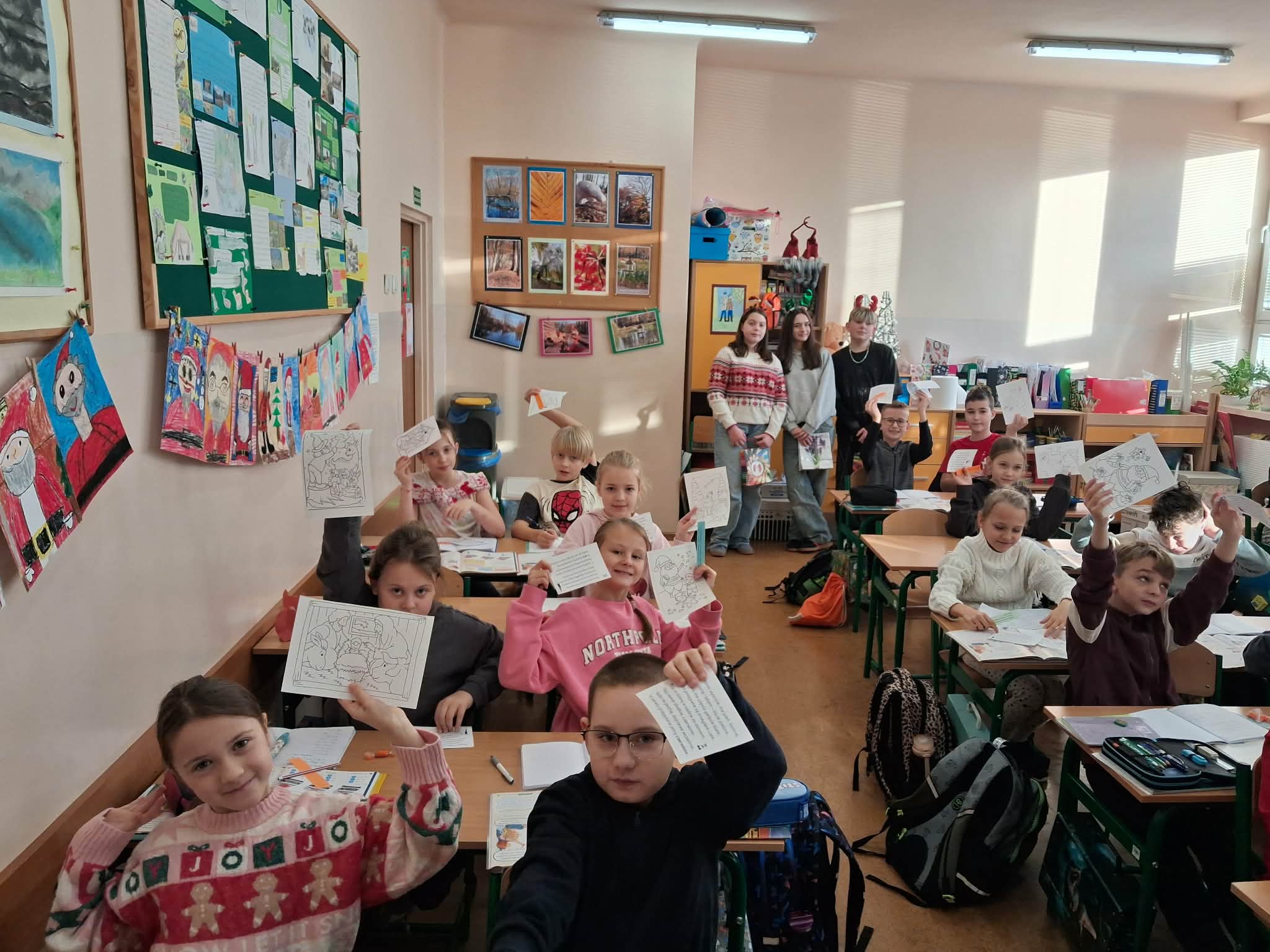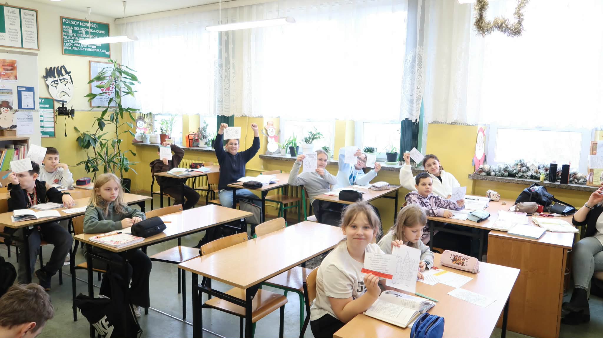 Tradycyjnie, jak co roku aktyw biblioteczny: Julia Słotwińska, Aleks Malicki i Alicja Wróblewska z klasy 7b wraz z nauczycielem bibliotekarzem odwiedzili wszystkich uczniów, nauczycieli i pracowników. Każdy otrzymał jakiś mikołajkowy prezent: słodycz, świąteczną kolorowankę, motywujący i inspirujący cytat, językowy wygibas ćwiczący wymowę, czy zgadywankę. Uczniowie zostali zachęceni do pamiętania o rodzicach i nauczycielach w okresie mikołajkowych prezentów, chociażby poprzez wręczenie rysunku, czy laurki. Dzieciom i młodzieży przypomniano, iż jednym z patronów roku 2025 jest Maria Pawlikowska-Jasnorzewska. Zachęcono uczniów do zapoznania się z jej twórczością. Postać poetki został przybliżona za pomocą gazetki. h.g.
