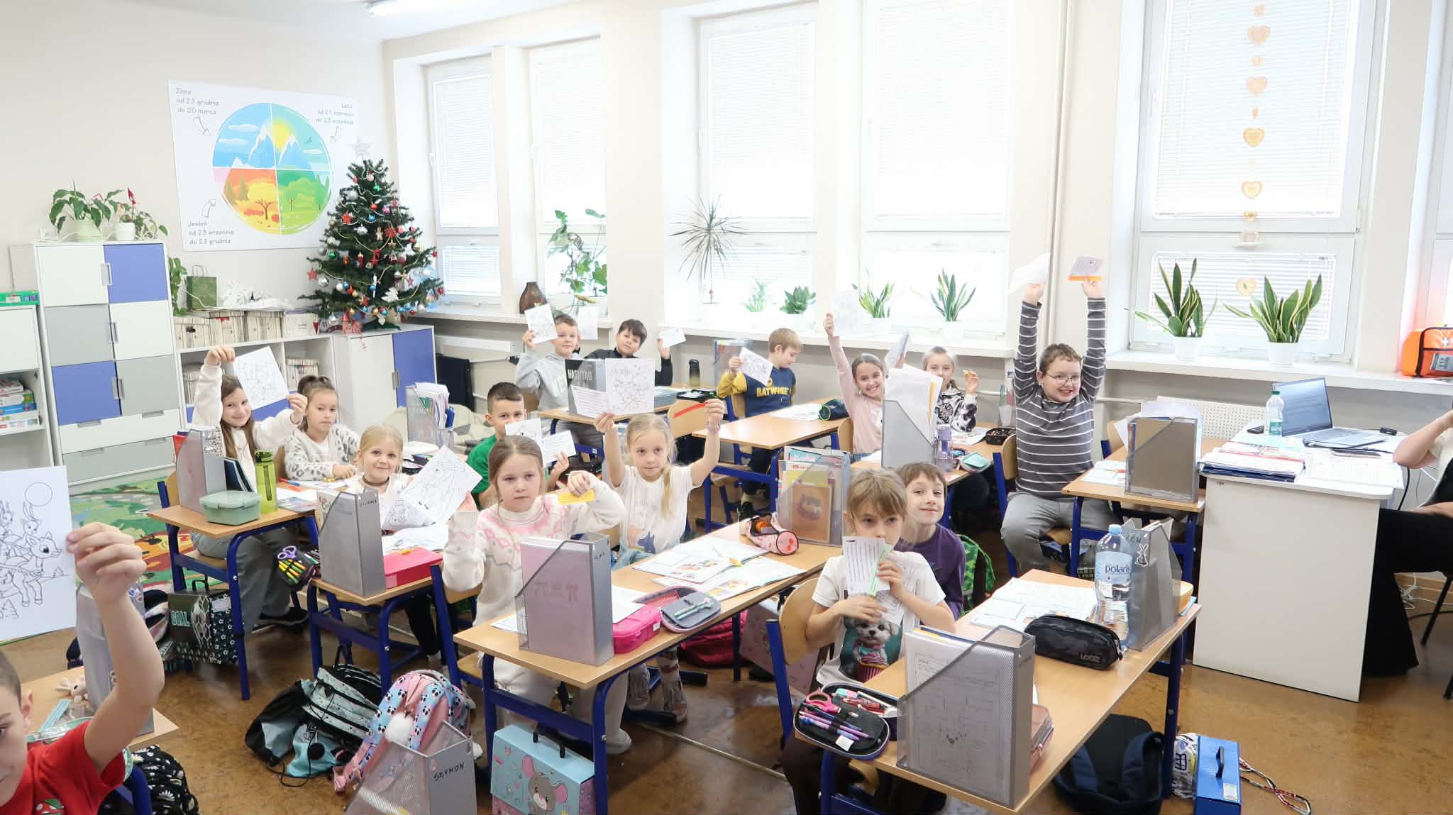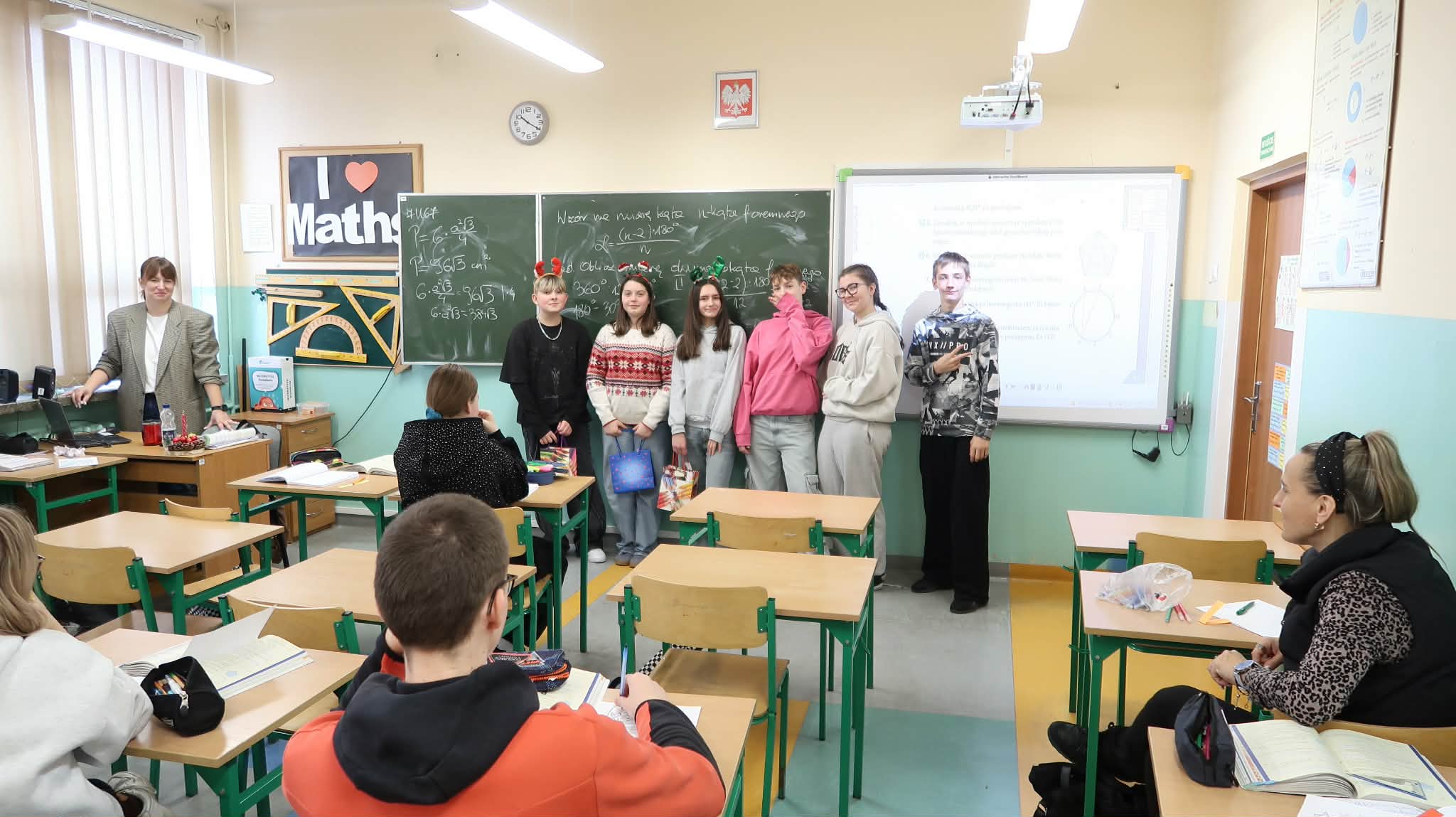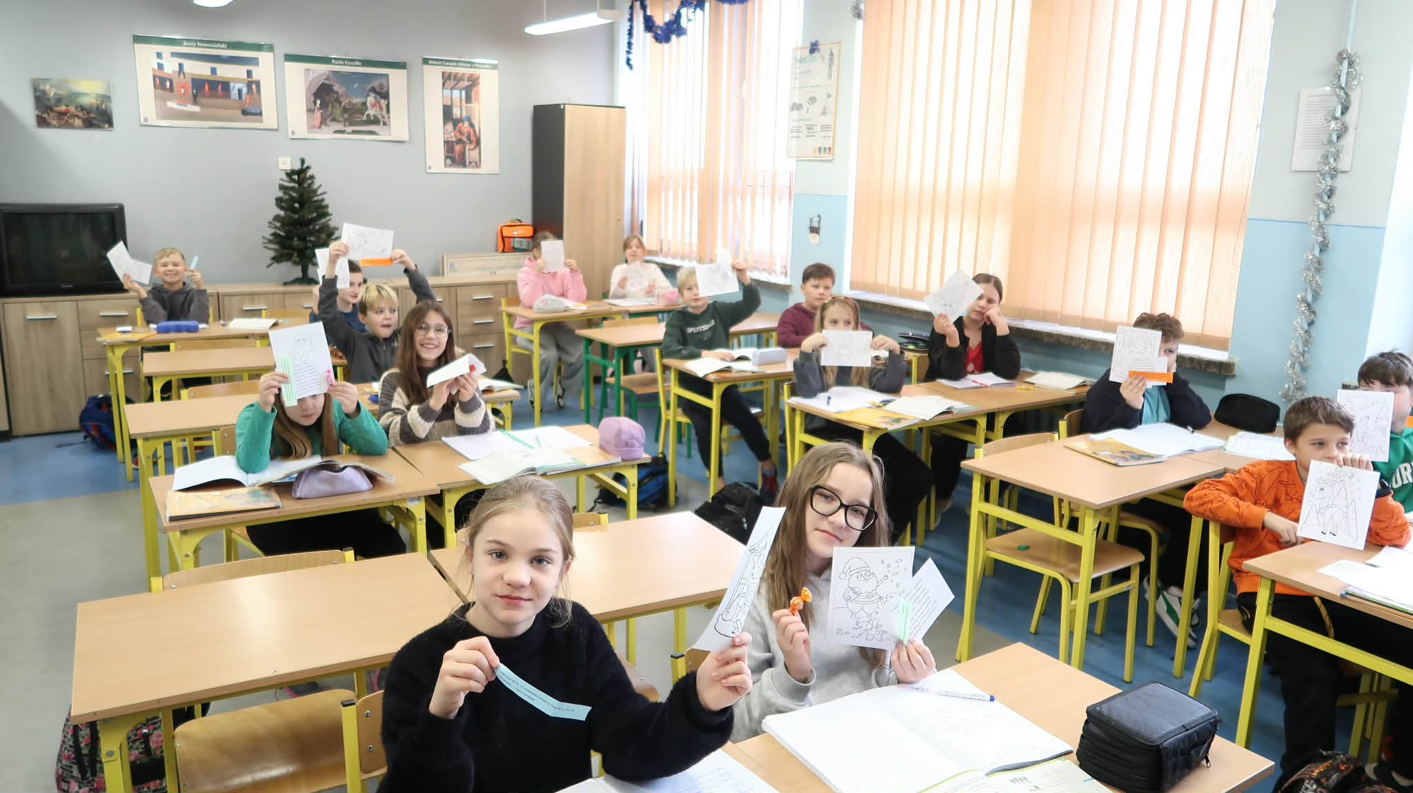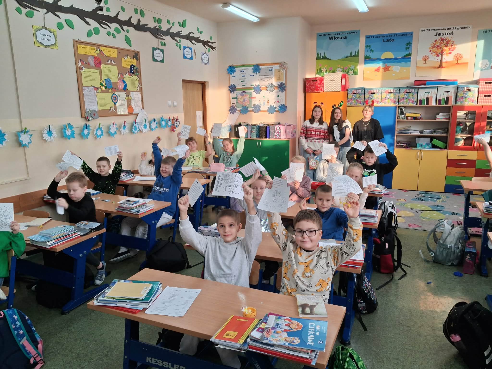 Tradycyjnie, jak co roku aktyw biblioteczny: Julia Słotwińska, Aleks Malicki i Alicja Wróblewska z klasy 7b wraz z nauczycielem bibliotekarzem odwiedzili wszystkich uczniów, nauczycieli i pracowników. Każdy otrzymał jakiś mikołajkowy prezent: słodycz, świąteczną kolorowankę, motywujący i inspirujący cytat, językowy wygibas ćwiczący wymowę, czy zgadywankę. Uczniowie zostali zachęceni do pamiętania o rodzicach i nauczycielach w okresie mikołajkowych prezentów, chociażby poprzez wręczenie rysunku, czy laurki. Dzieciom i młodzieży przypomniano, iż jednym z patronów roku 2025 jest Maria Pawlikowska-Jasnorzewska. Zachęcono uczniów do zapoznania się z jej twórczością. Postać poetki został przybliżona za pomocą gazetki. h.g.