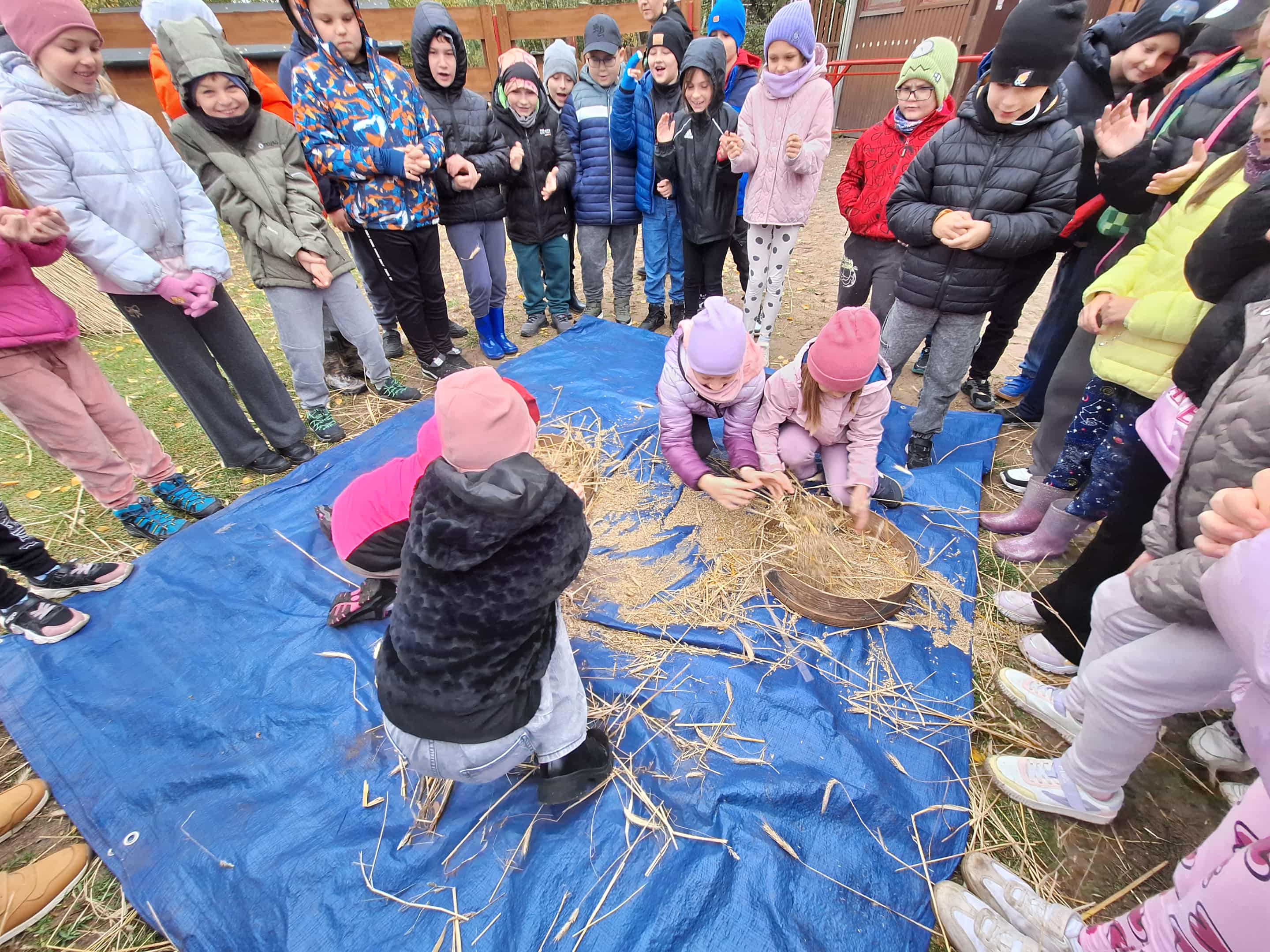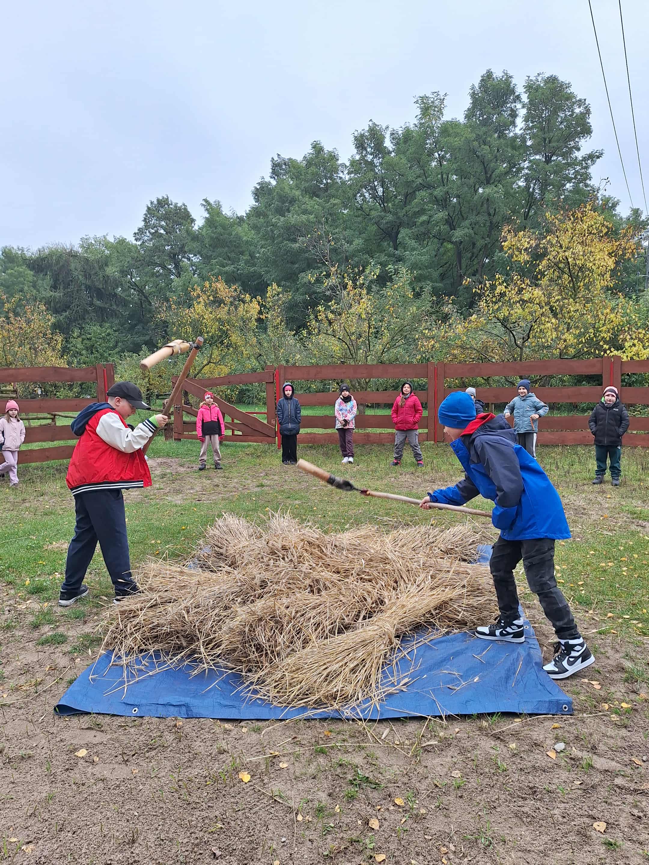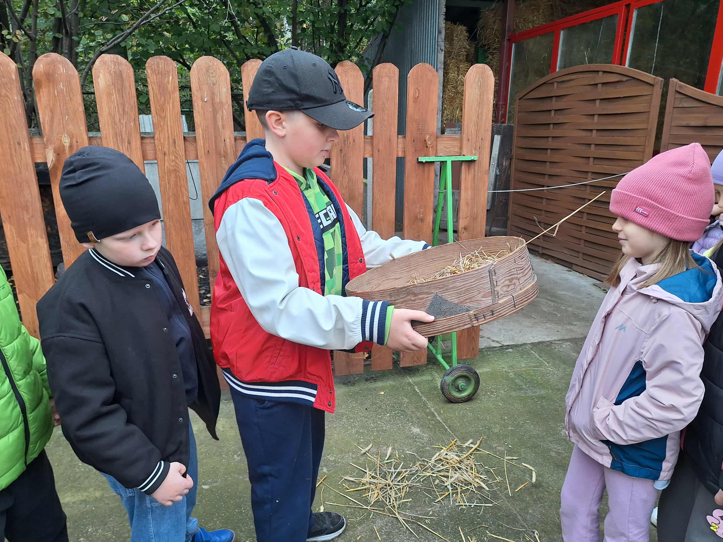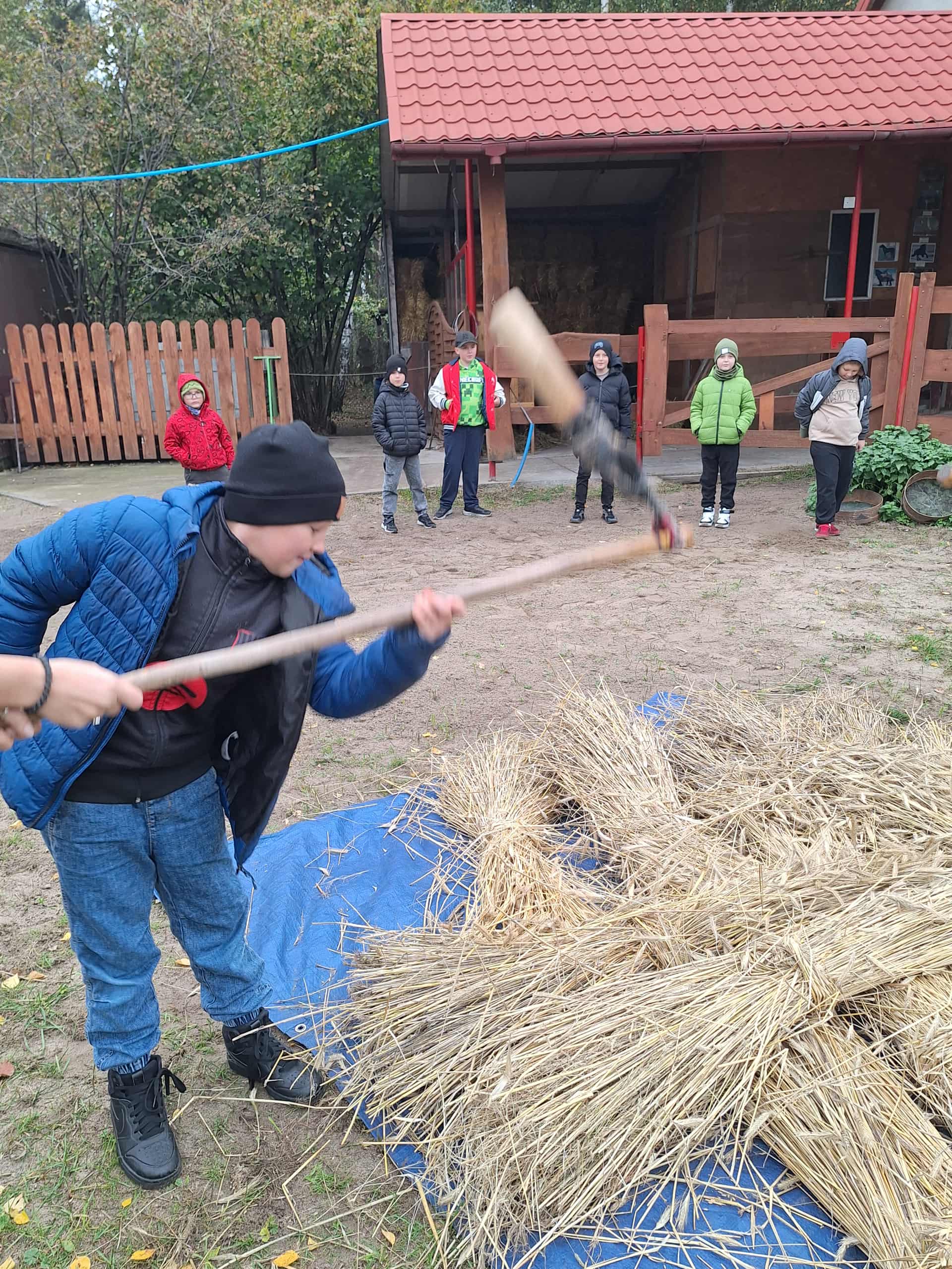 Klasy 2b i 3a kolejny raz zawitały do Zagrody Edukacyjnej "Stajnia Lusi" w Konarzewie. Tym razem dzieci zapoznały się z procesem powstawania chleba. Każdy mógł sam doświadczyć jak wygląda praca rolnika - młócenie zboża, mielenie na mąkę w żarnach, wysiew i bronowanie. Wysiłek został uwieńczony samodzielnym wypiekaniem chleba w tradycyjnym piecu. Jak zawsze w Konarzewie, zabawa była wspaniała!