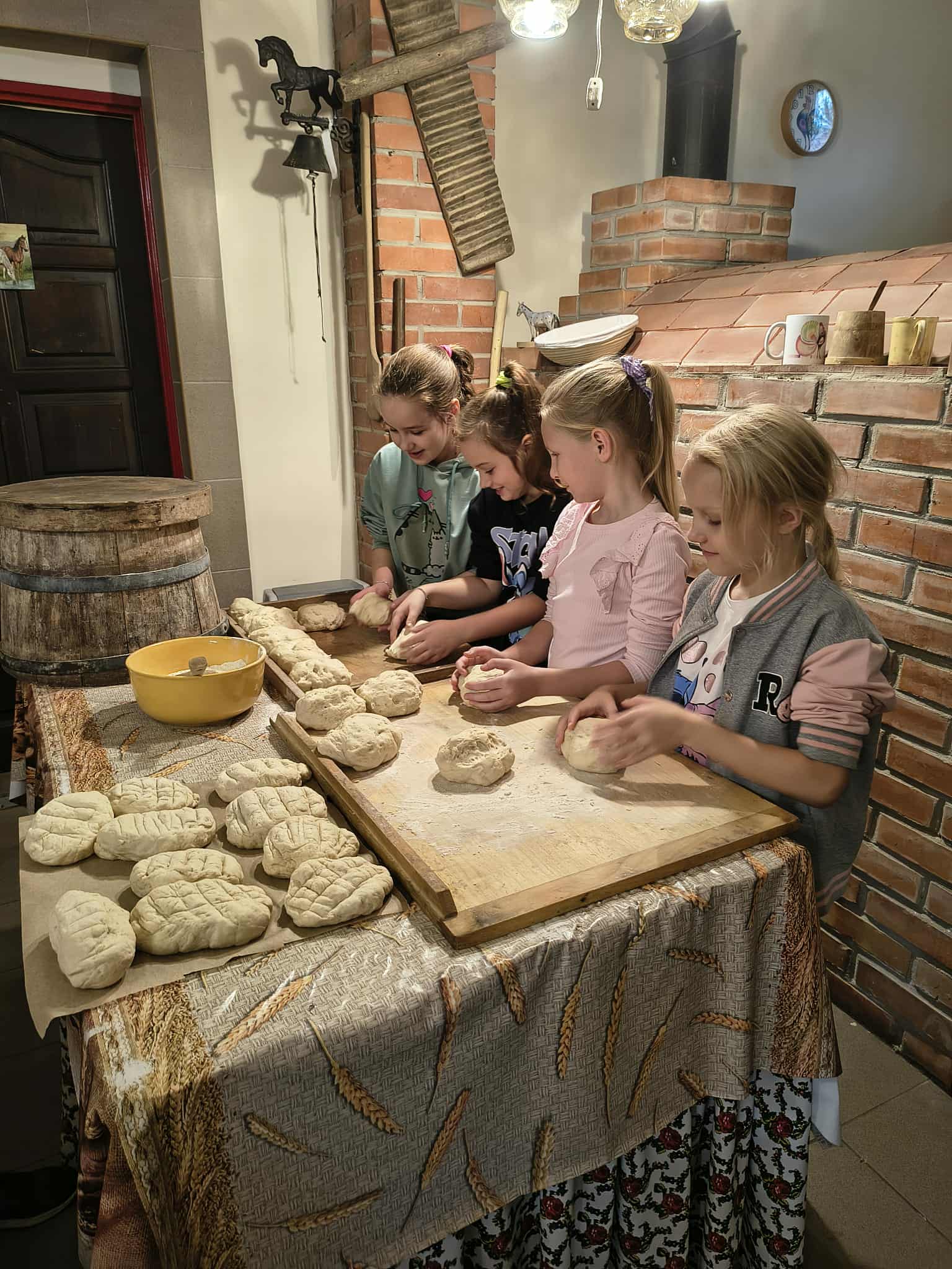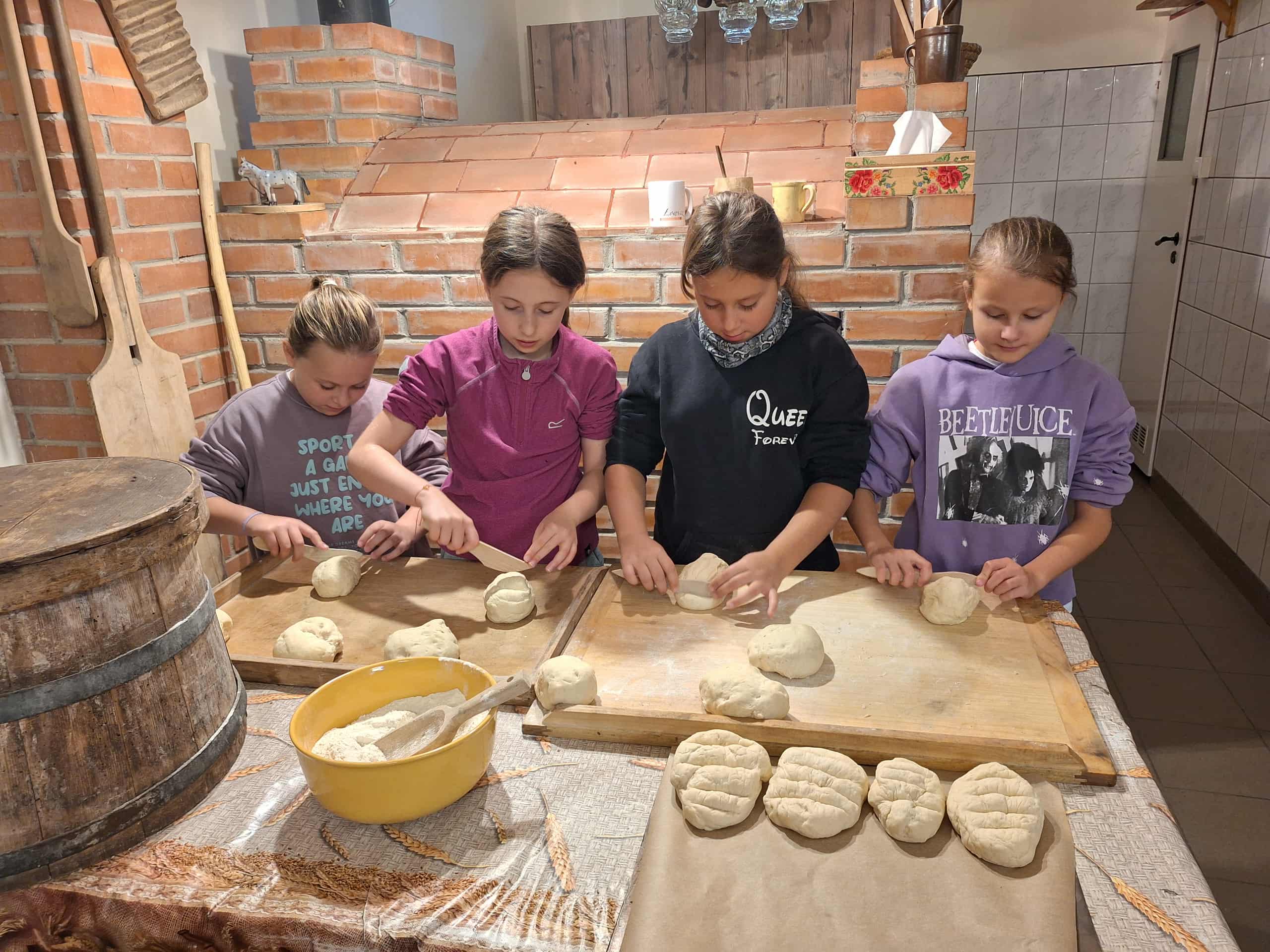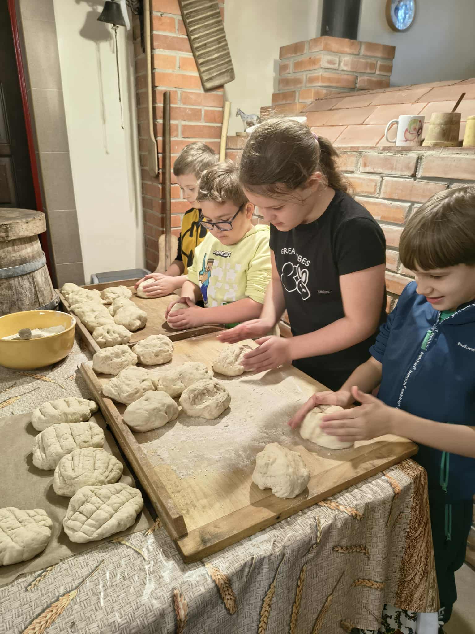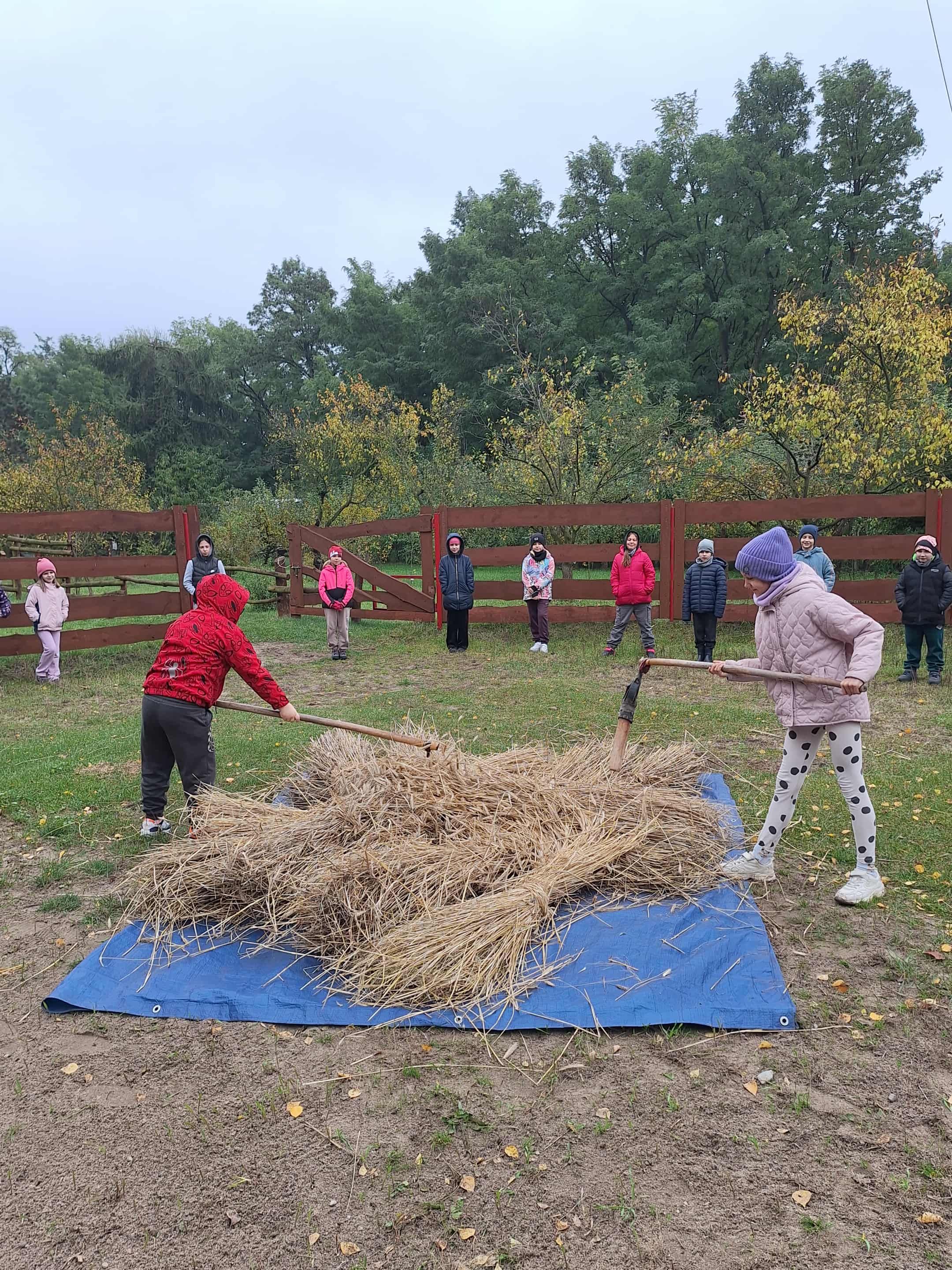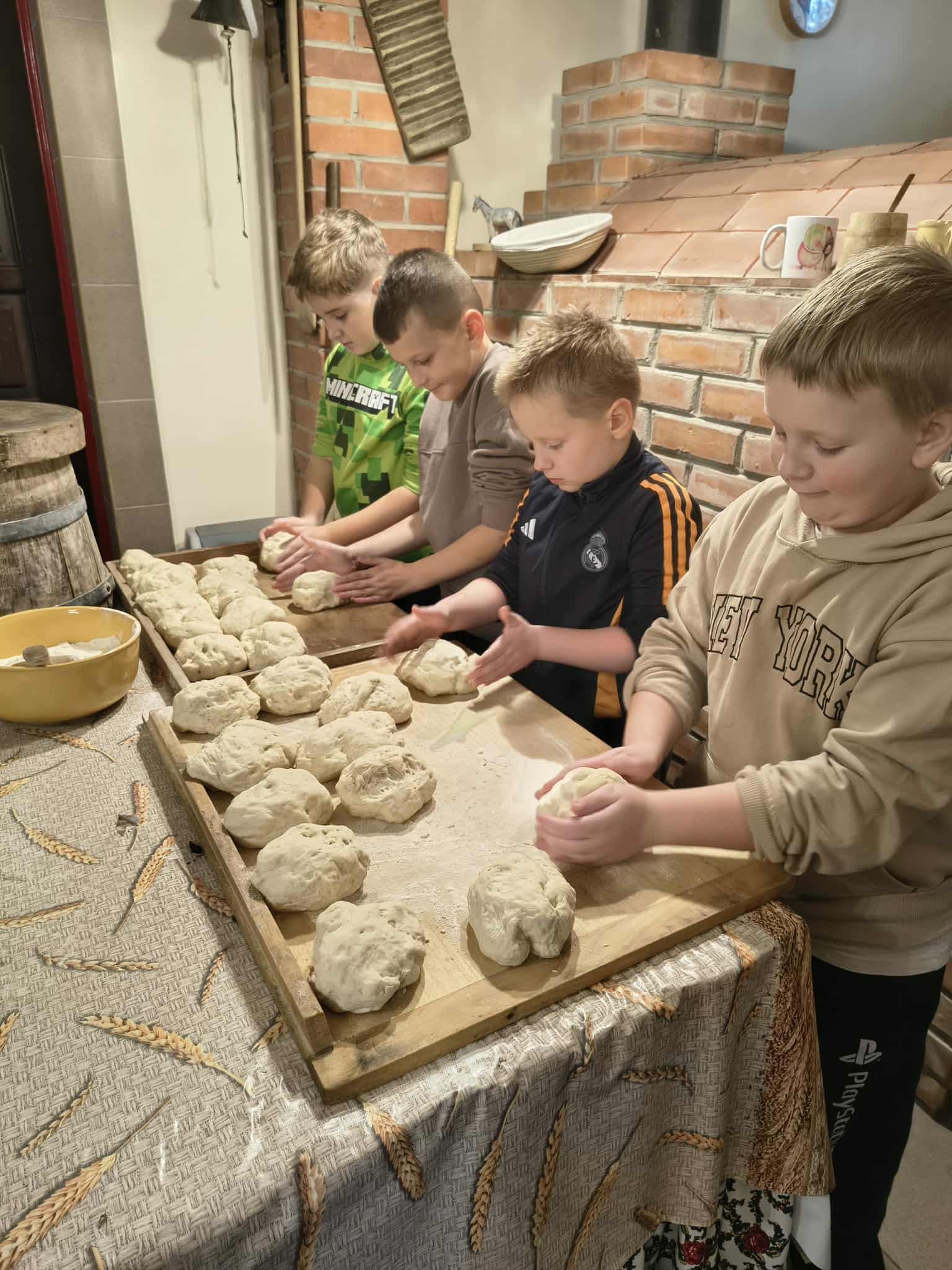 Klasy 2b i 3a kolejny raz zawitały do Zagrody Edukacyjnej "Stajnia Lusi" w Konarzewie. Tym razem dzieci zapoznały się z procesem powstawania chleba. Każdy mógł sam doświadczyć jak wygląda praca rolnika - młócenie zboża, mielenie na mąkę w żarnach, wysiew i bronowanie. Wysiłek został uwieńczony samodzielnym wypiekaniem chleba w tradycyjnym piecu. Jak zawsze w Konarzewie, zabawa była wspaniała!