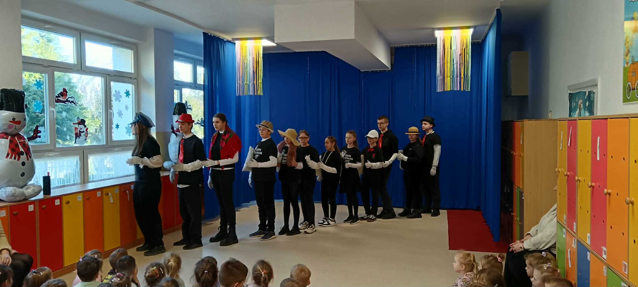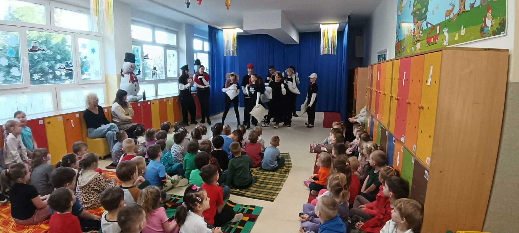 Grupa Teatralna INNI wraz z instruktorką, panią Joanną Domalik-Dróżdż, odwiedziła dziś Przedszkole nr 19. Już kolejny raz scena zamieniła się w pociąg do krainy wyobraźni - było radośnie, muzycznie i bardzo wesoło. Dzieci nie tylko oglądały spektakl, ale świetnie bawiły się z aktorami. Ochoczo demonstrowały Kurę Samograjkę, machając skrzydełkami i osła, którego mrówka niosła przyprawiając sobie wielkie uszy - a Wyspy Bergamuty, choć podobno ich nie ma, na chwilę stały się całkiem prawdziwe, na stacjach: Stragan, Leniuchowo, można było spotkać ciekawe osobowości, które zachwycały, rozśmieszały, a nawet czasem wzruszały. Miło było patrzeć na zaciekawione i radosne buźki maluszków. Bo z teatrem można podróżować! Nie zawsze trzeba się do niego wybrać - czasem to on przyjeżdża do widzów. I wtedy, jak w piosence Zbigniewa Wodeckiego, wiadomo, kto gra - więc można śmiać się i wzruszać bez obaw.