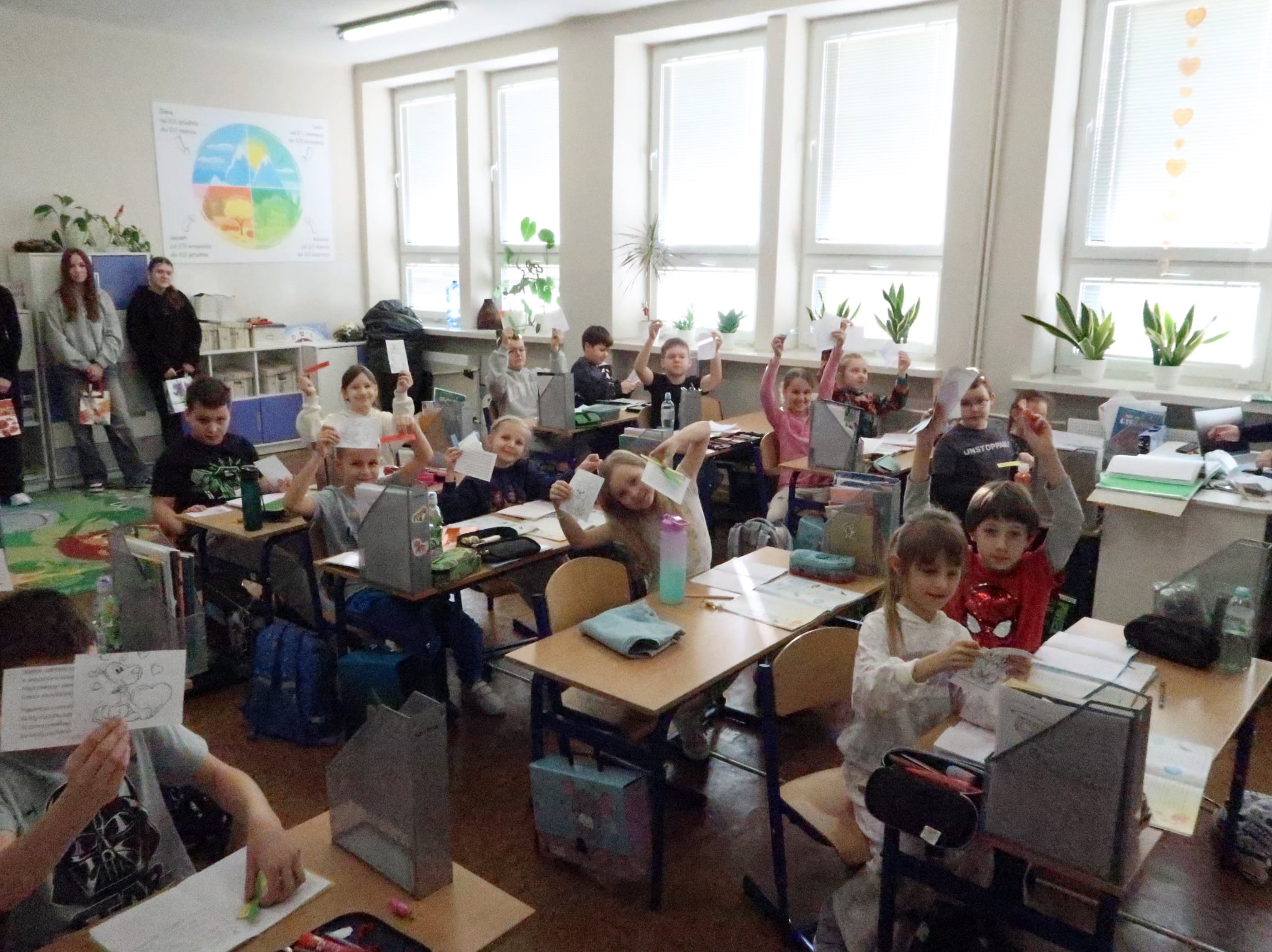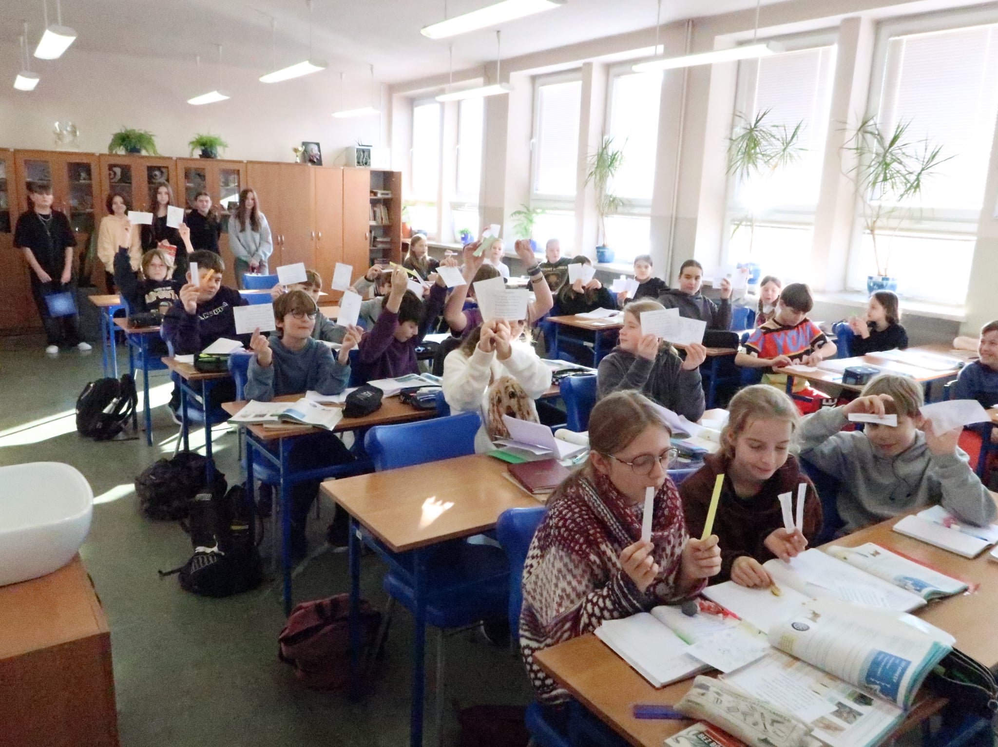 Dodatkowo młodsi uczniowie zostali zapoznani z Prawami Dziecka, a starsi z Konwencją o Prawach Dziecka w postaci dodatkowych cytatów. W ten sposób uczniowi poznali swoje prawa - cześć odczytali na głoś na lekcji, pozostałymi mogli wymienić się między sobą na przerwie lub zapoznać z plakatów z bibliotece szkolnej. h.g.