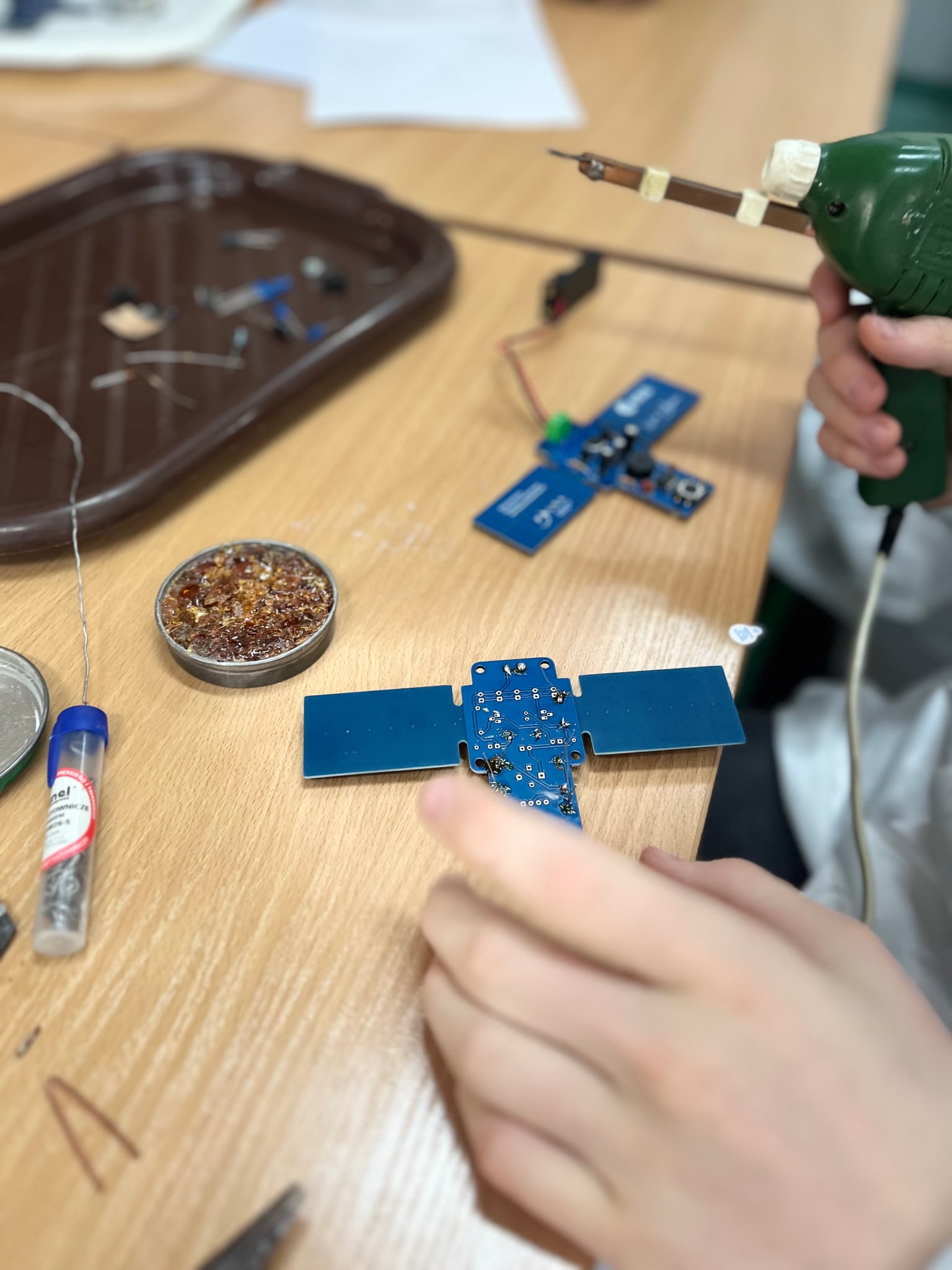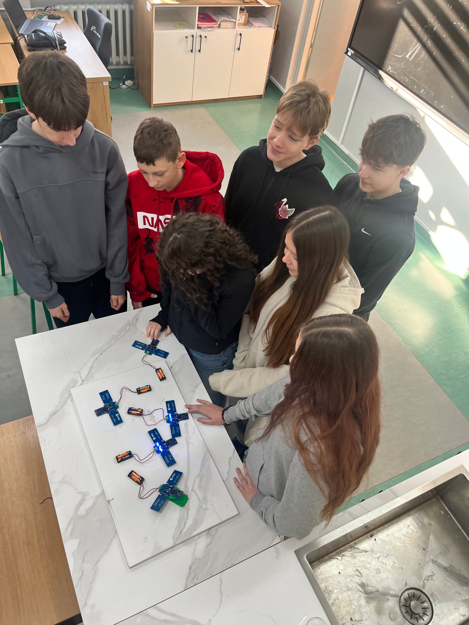 W projekcie wzięli udział uczniowie klas ósmych, którzy pod opieką nauczycielki fizyki uczestniczyli w warsztatach z zakresu podstaw elektroniki, lutowania oraz alfabetu Morse’a. Uczniowie samodzielnie montowali zestawy edukacyjne, rozwijając swoje umiejętności techniczne i inżynieryjne.