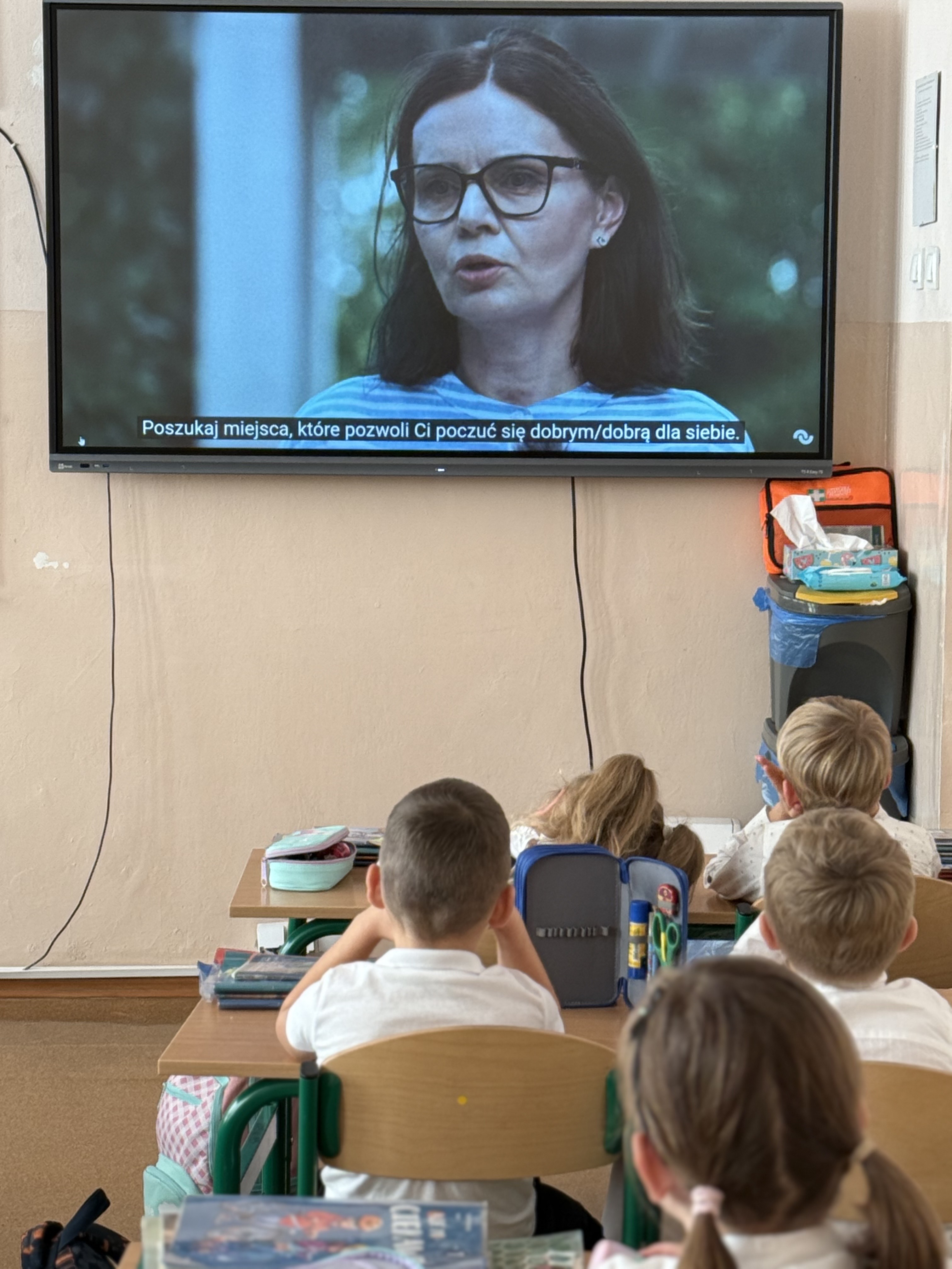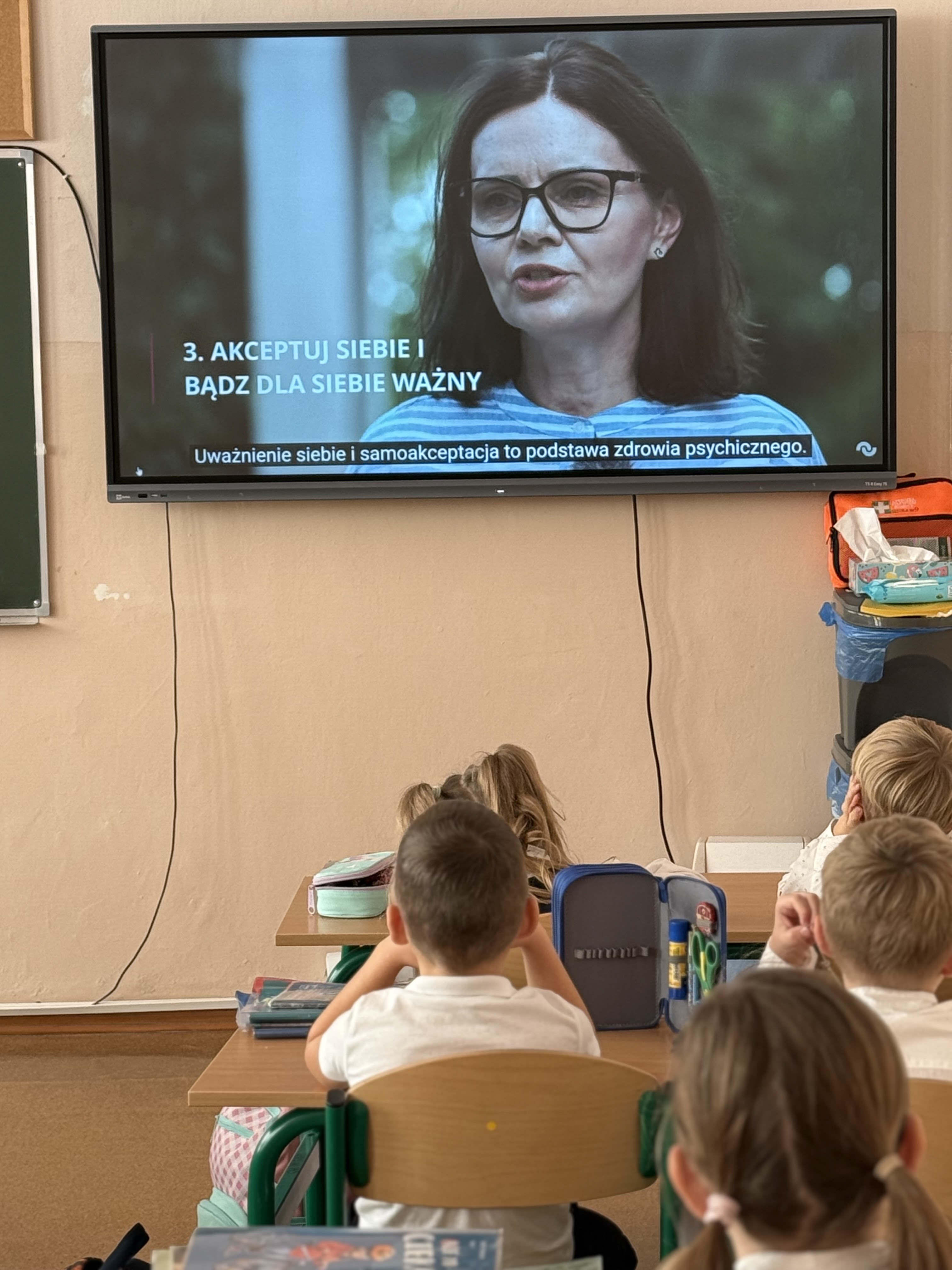 Uczniowie klasy 1B wzięli dziś udział w zajęciach poświęconych zdrowiu psychicznemu. Obejrzeli film edukacyjny, z którego dowiedzieli się, jak ważne jest mówienie o swoich emocjach, odpoczynku i dbanie o dobre samopoczucie każdego dnia.
