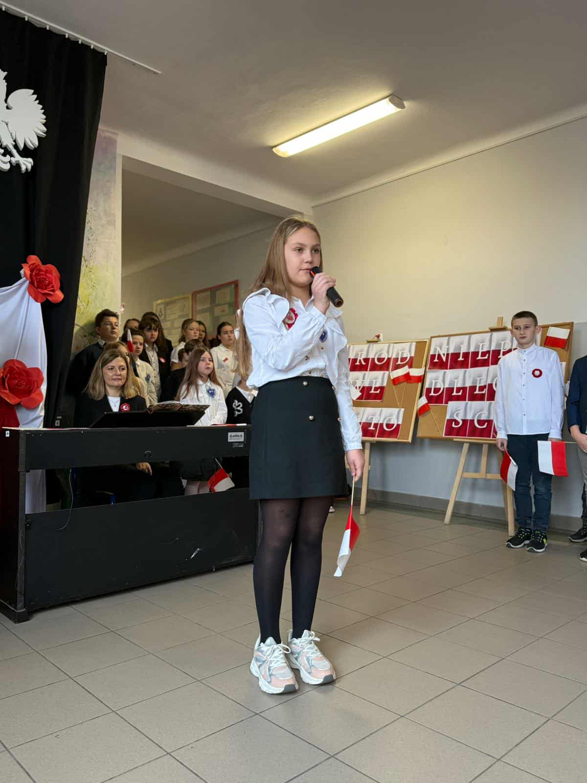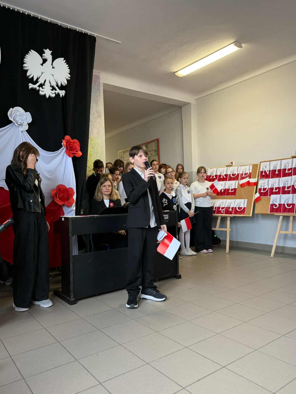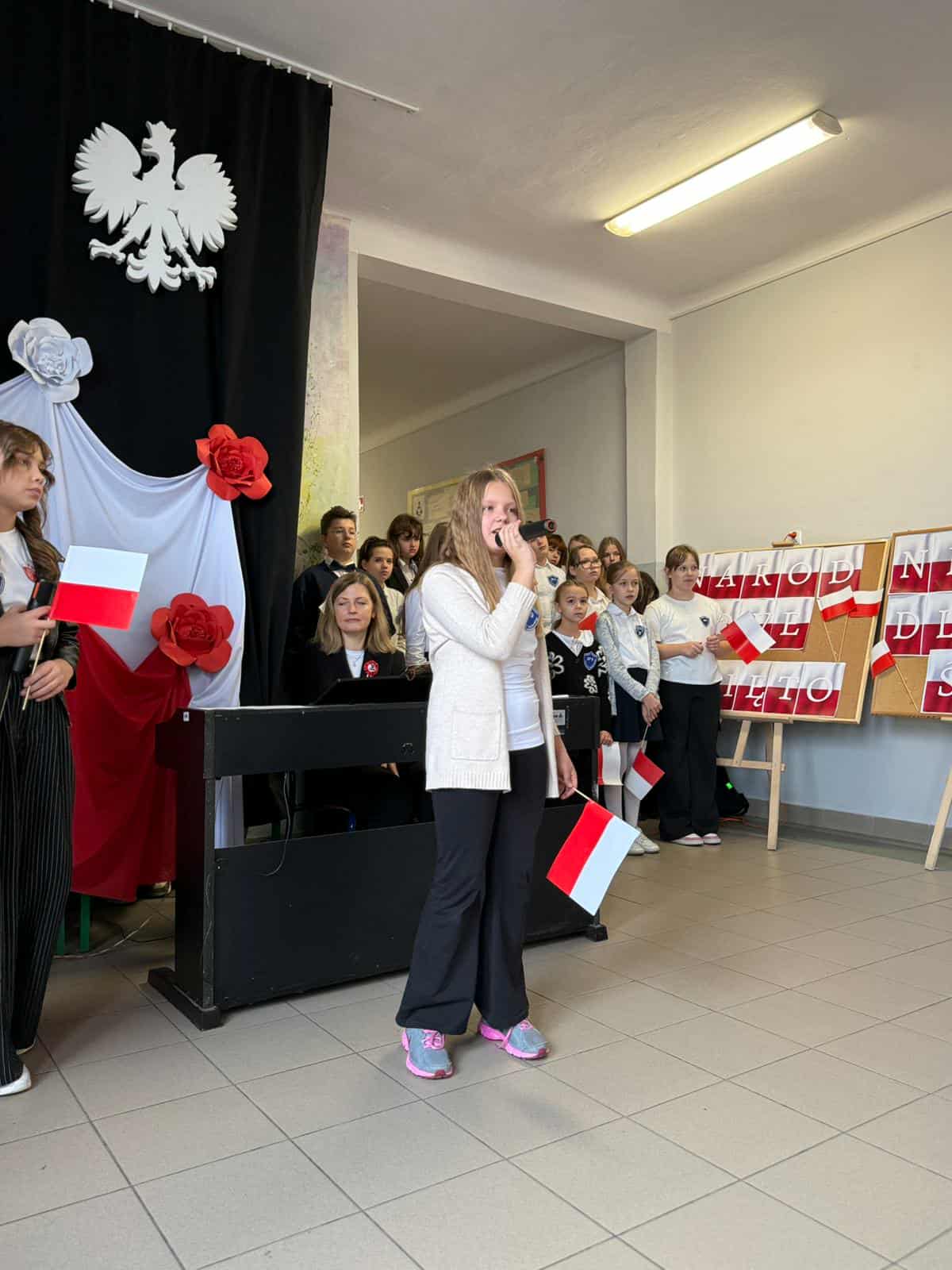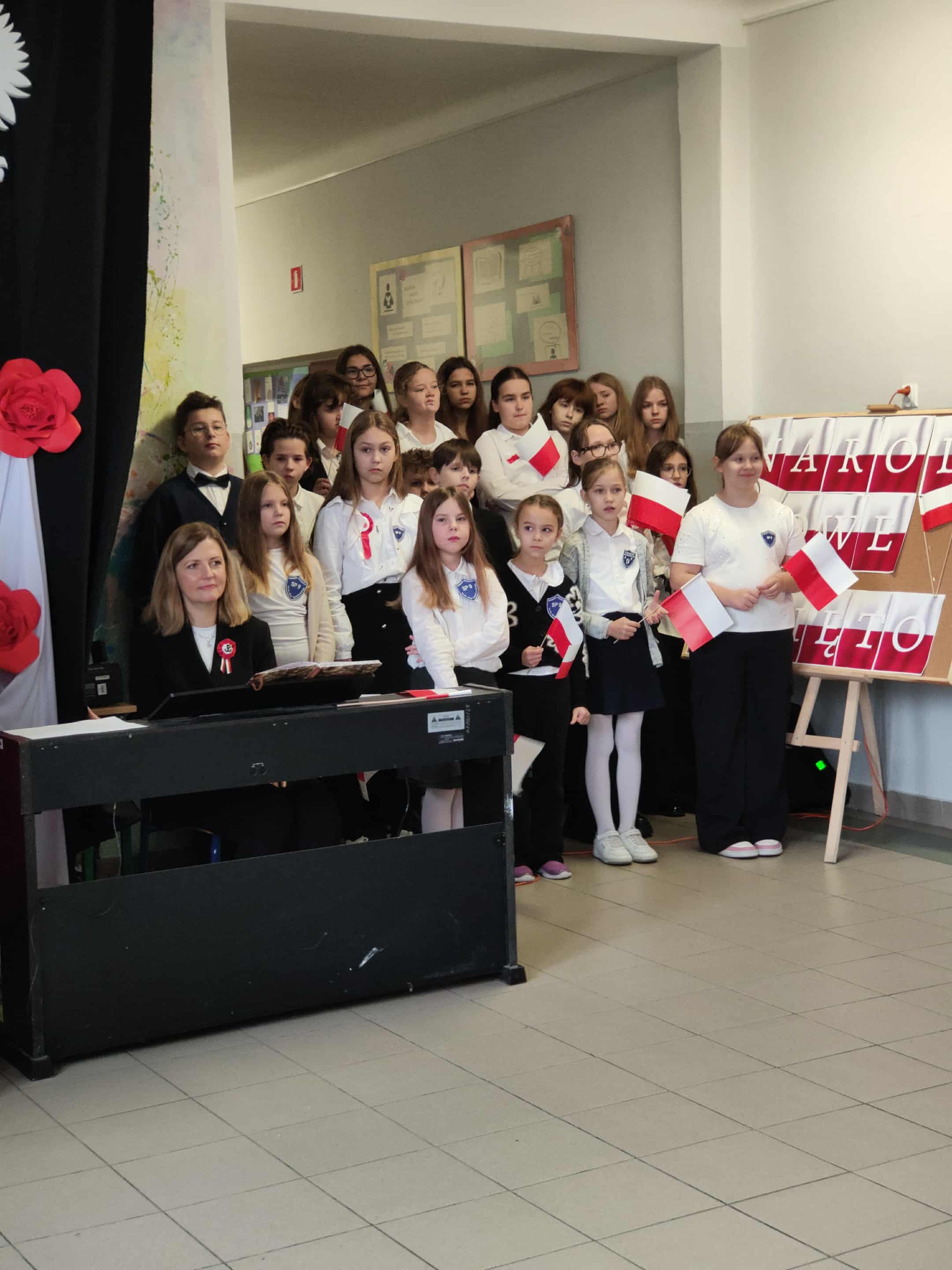 Dziś w naszej szkole odbył się uroczysty apel z okazji Święta Niepodległości. W programie artystycznym wystąpili uczniowie klas 4a i 4b oraz chór szkolny. Uczniowie przypomnieli historię odzyskania przez Polskę niepodległości i zaprezentowali pieśni patriotyczne. Uroczystość przygotowały panie Izabela Świątek, Małgorzata Jabłońska i Anna Niewiadomska.