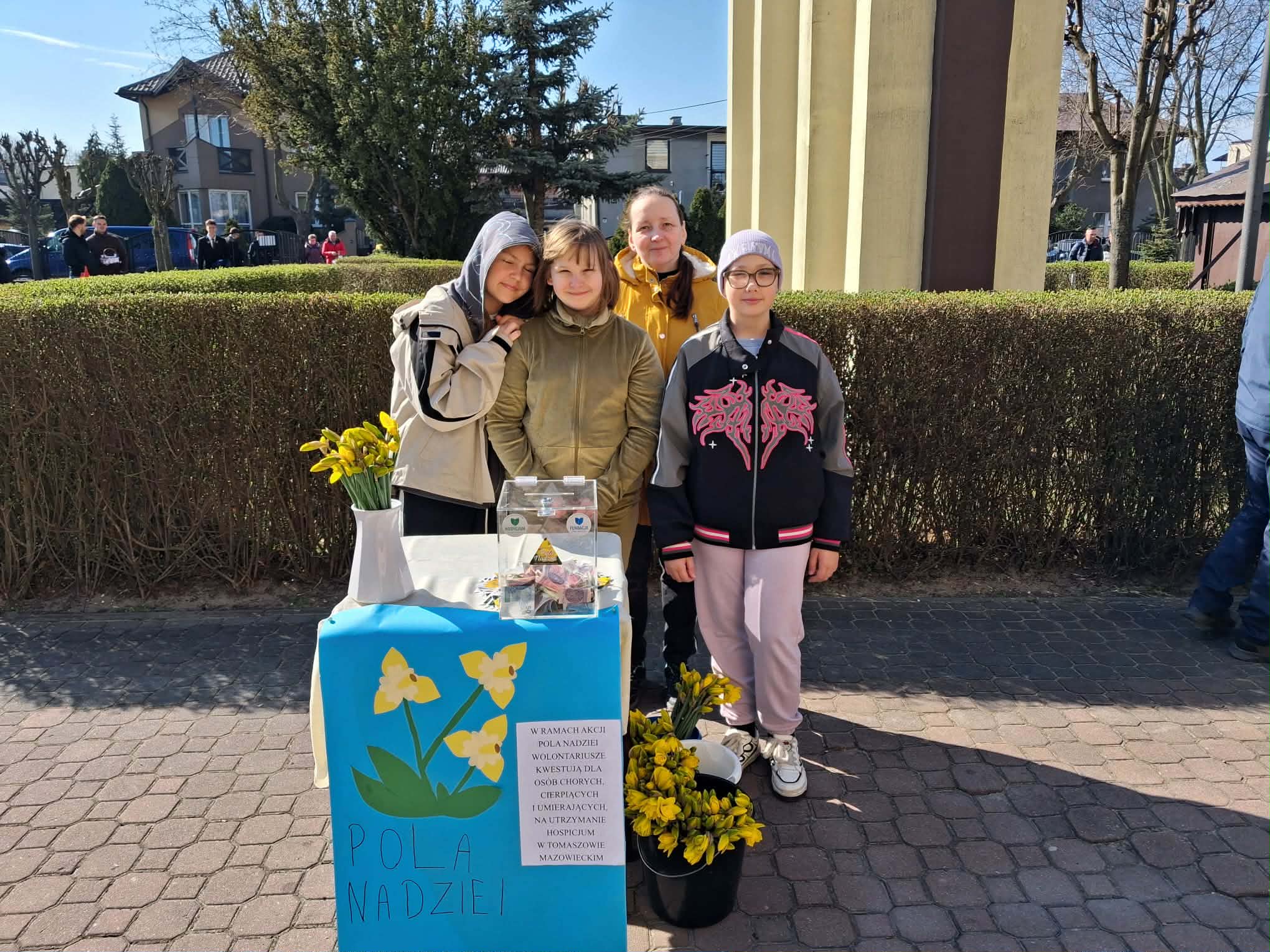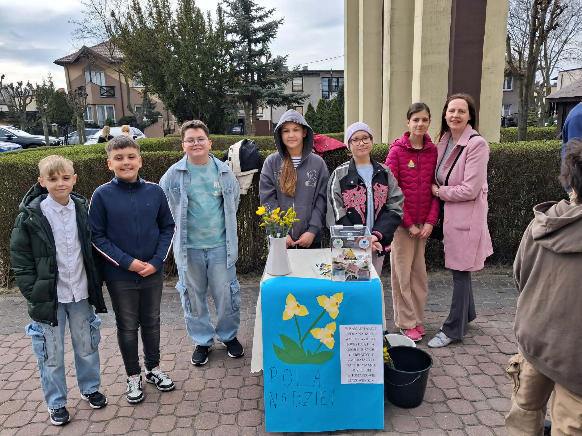 W dniu 4 kwietnia, w Wielką Sobotę, nasi wolontariusze wraz z opiekunem kwestowali przy parafii Św. Rodziny na ul. Niskiej, w ramach tzw. Pól Nadziei. Celem zbiórki było wsparcie osób chorych, cierpiących, umierających, a także z przeznaczeniem na utrzymanie tomaszowskiego Hospicjum. Nasi uczniowie zgłosili się bardzo licznie i kwestowali od godziny 10:00 do 13:00. Dodatkowo wspomogli ich spontanicznie rodzice: pani Monika Jaworska i pani Ilona Karp.