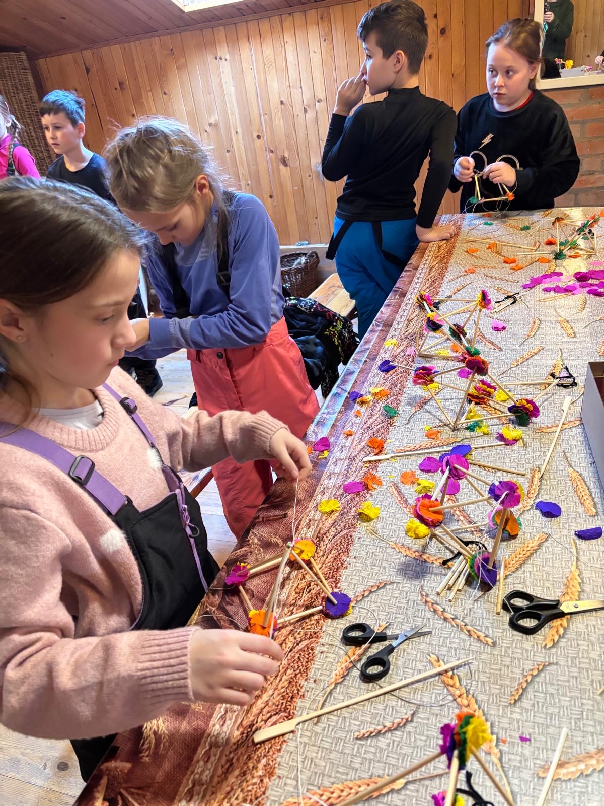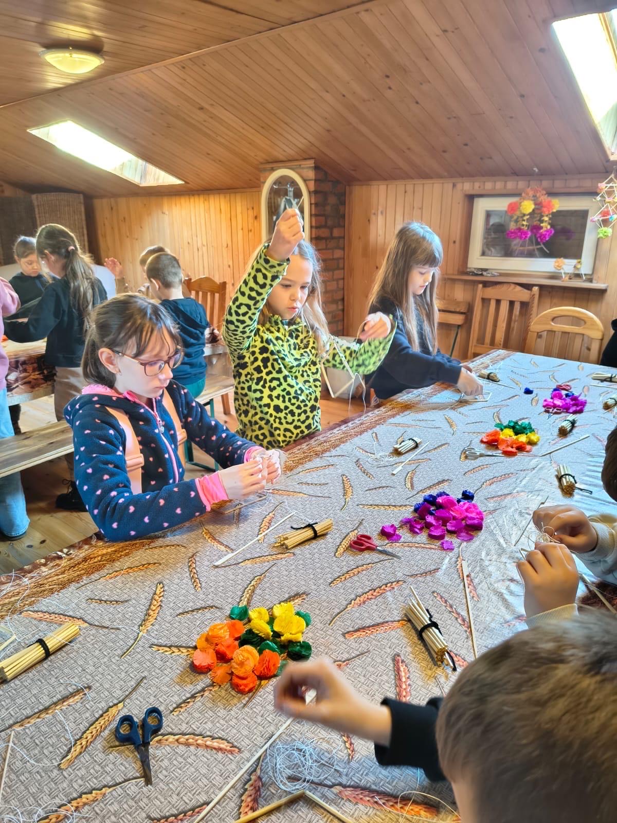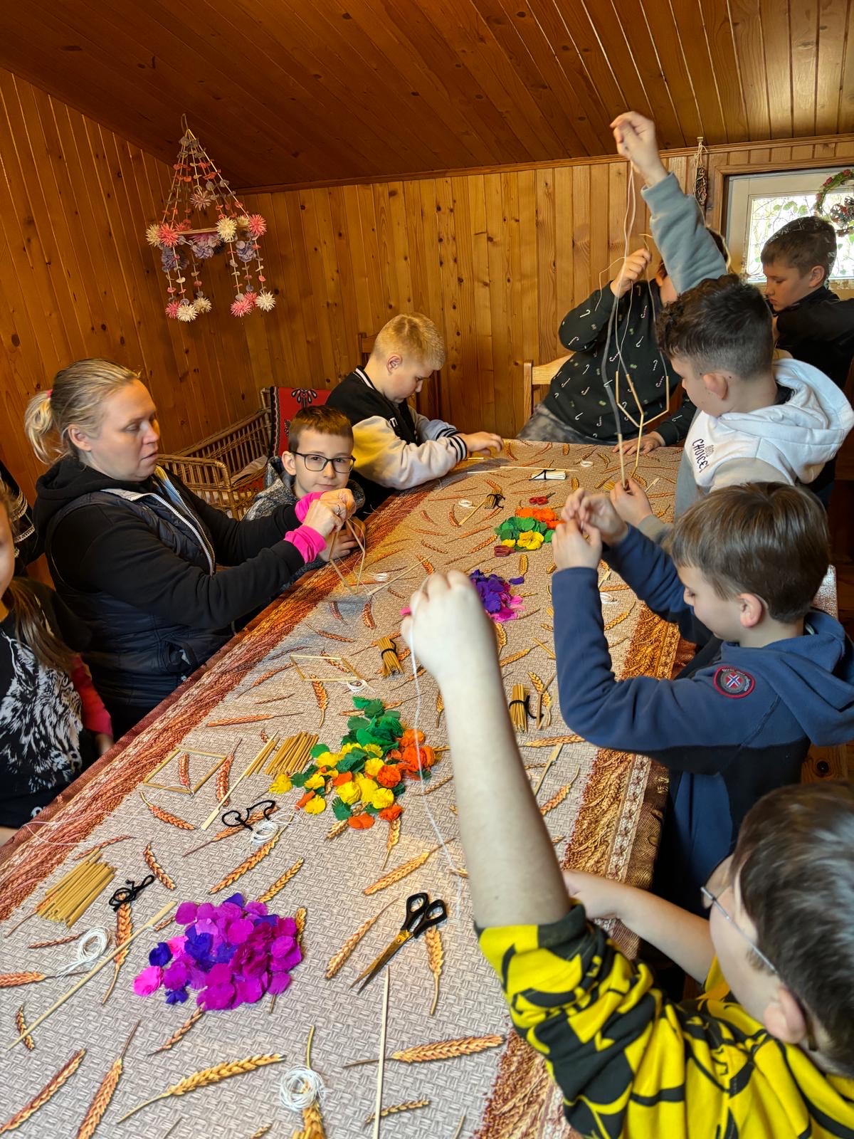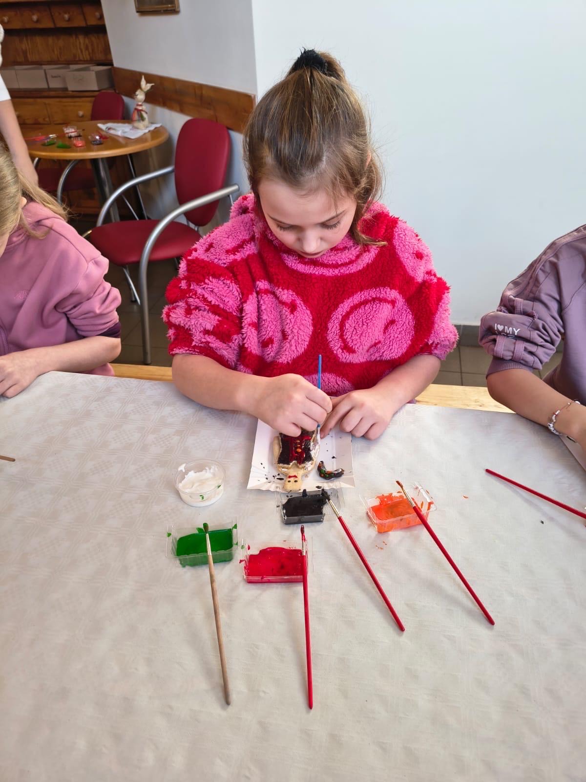 Klasy 2b i 3a kolejny raz odwiedziły Zagrodę Edukacyjną „Stajnia Lusi” w Konarzewie. Tym razem dzieci wzięły udział w warsztatach sztuki ludowej. Każdy mógł samodzielnie wykonać pająka, tradycyjną ozdobę regionu łowickiego oraz ubrać ciasteczkowe ludziki w stroje ludowe za pomocą kolorowego lukru. Było wspaniale!